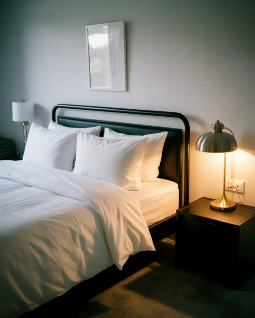 Practical insight: noise control often gets overlooked in guest room design. A white noise machine or fan provides sound masking, particularly valuable in homes with thin walls or early-rising hosts. Add a comfortable reading chair if space allows—guests don’t want to feel confined to the bed during waking hours. Keep surfaces clear; clutter creates visual stress even when guests don’t consciously register it. A small tray with sleep essentials—earplugs, eye mask, phone charger—shows thoughtfulness without being intrusive. Consider the view from the bed itself—what guests see while lying down should be intentionally pleasant, not an awkward angle of a closet door or blank wall.