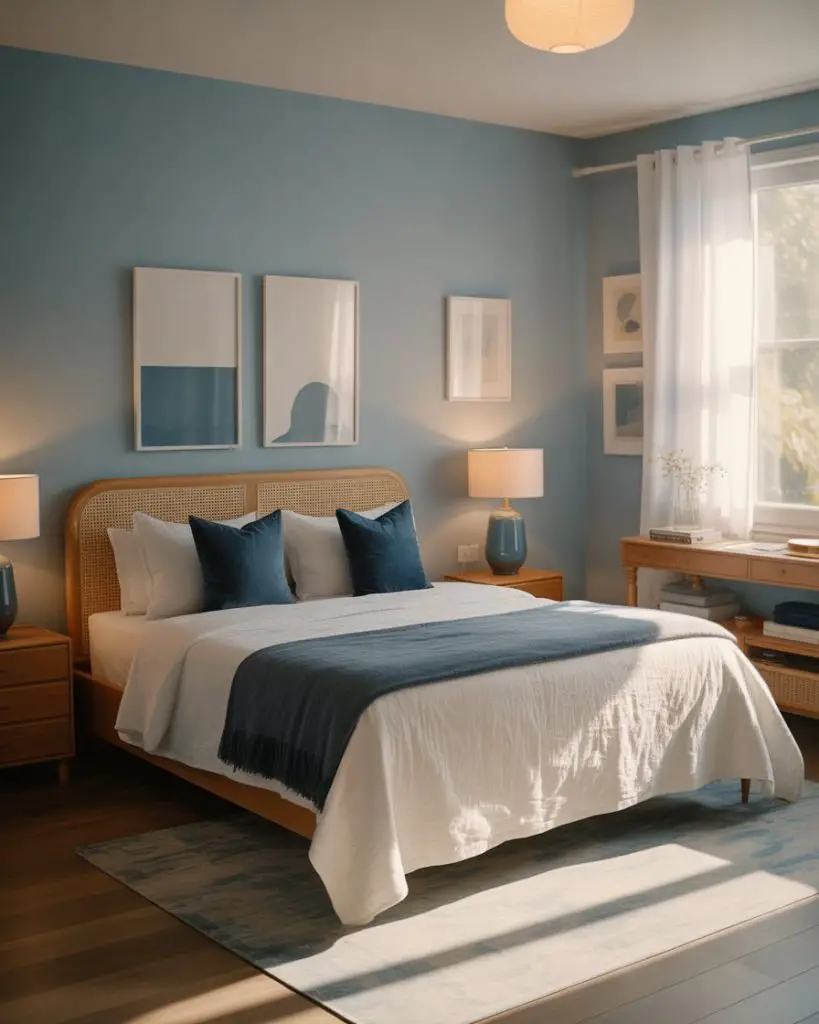 Regional context matters: blue-themed guest rooms feel particularly authentic in coastal states—California, Florida, the Carolinas, New England—where the color references immediate surroundings. Inland, blue reads as universally calming without geographic specificity. A designer friend notes that blue has replaced beige as America’s “safe” guest room color because it offers personality while remaining broadly appealing. Warm the palette with natural wood tones and off-white textiles to prevent it from feeling cold. Consider painting just the ceiling in a pale blue—an unexpected move that adds character without overwhelming the space.