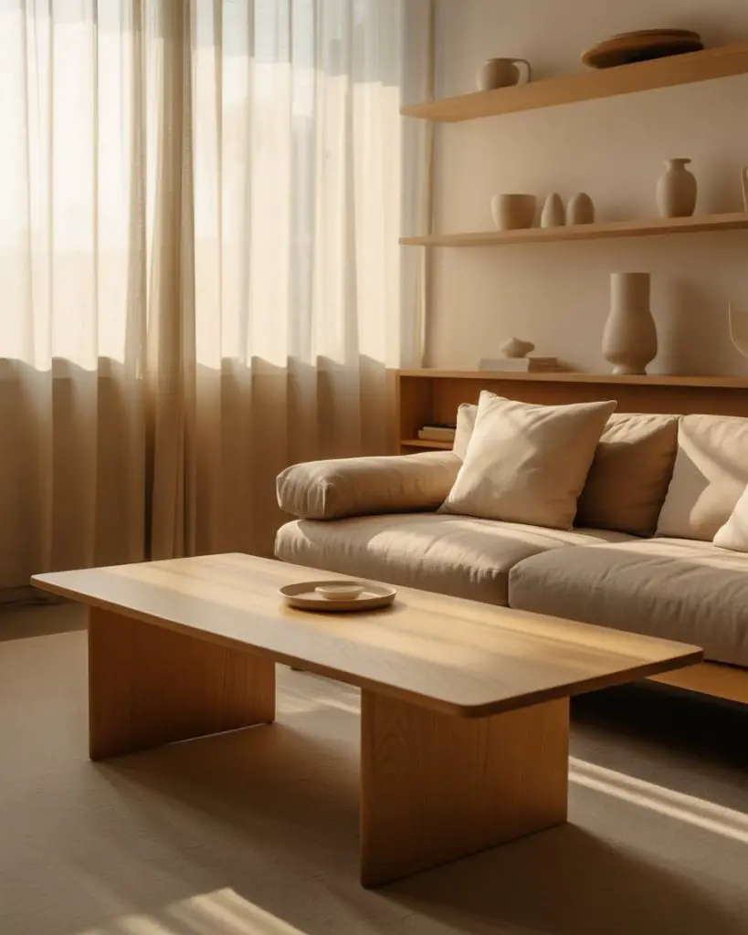 1. Japandi Serenity with Wooden Accents