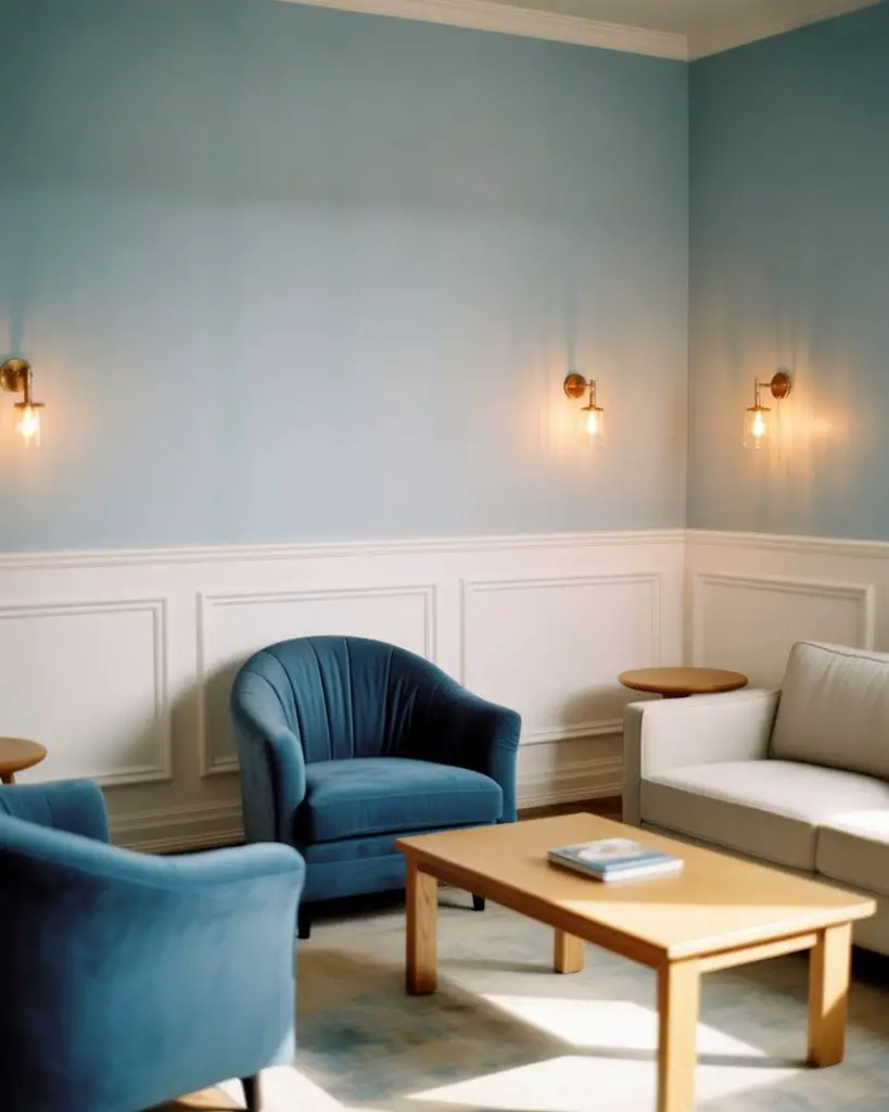 Blue is climbing the ranks as a go-to living room color, offering everything from serene powder blues to dramatic navy depths. This versatile hue promotes relaxation while adding visual interest that neutrals can’t match. Pair lighter blues with white trim and natural wooden furniture for a coastal-casual feel, or go bold with deep indigo walls anchored by luxury velvet seating and metallic accents. The psychological benefits are real—blue spaces feel larger and more peaceful.
