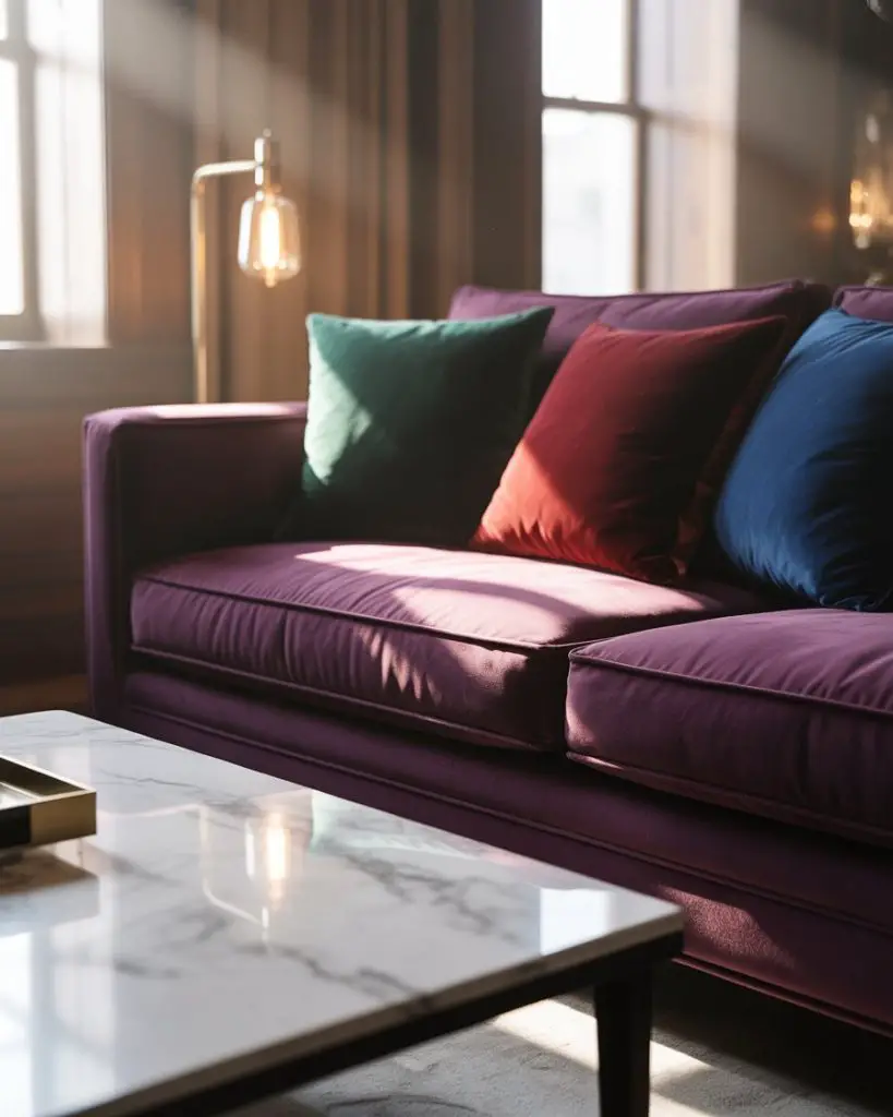 Where it works best: In homes with high ceilings or large windows, where natural light can play off the velvet’s texture throughout the day. The common mistake here is choosing velvet in pale colors that show every mark—stick with deeper tones that age gracefully and hide wear. Jewel tones also photograph beautifully, which is why they’re all over Pinterest feeds right now.