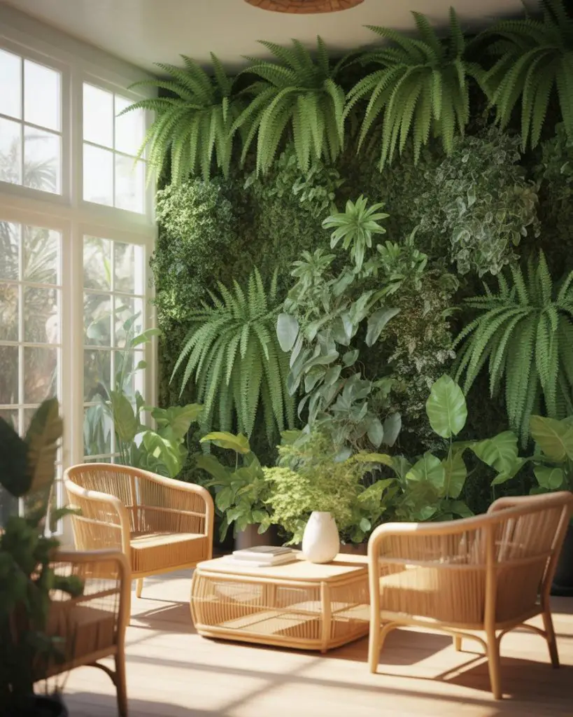The desire to bring nature indoors has evolved beyond scattered houseplants into intentional green living walls that serve as both art and air purification. These vertical gardens range from simple mounted planters to elaborate irrigation systems, transforming entire walls into lush focal points. Combined with tropical furniture in natural materials and plenty of natural light, this approach creates spaces that genuinely improve well-being. It’s designed as a health intervention.