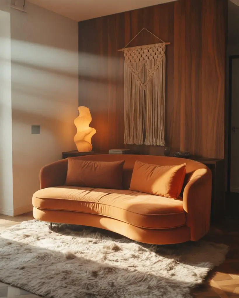 Practical insight: The 70s palette works because it grounds a room in warmth—something many modern spaces lack. These earthy tones (terracotta, olive, and caramel) pair surprisingly well with brass and black accents. Don’t be afraid to mix vintage finds from estate sales with new pieces. The key is maintaining that relaxed, slightly bohemian feel while keeping the room functional for actual living, not just Instagram.