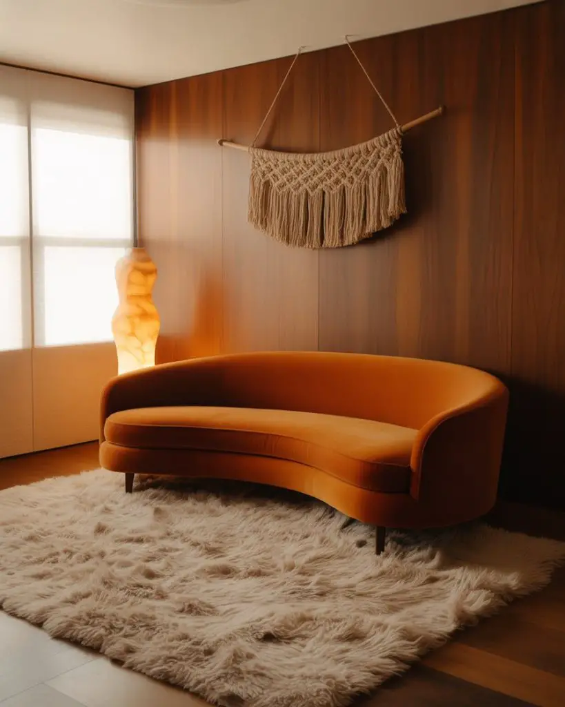 The groovy vibes of the 70s are back, but this time with more restraint and sophistication. Think curved sofas in burnt orange or mustard, shag rugs that beg to be touched, and sculptural table lamps with warm-toned shades. This era’s love of rustic wood paneling and macramé wall hangings translates beautifully into modern home spaces when balanced with contemporary art and cleaner lines. It’s nostalgia without kitsch.