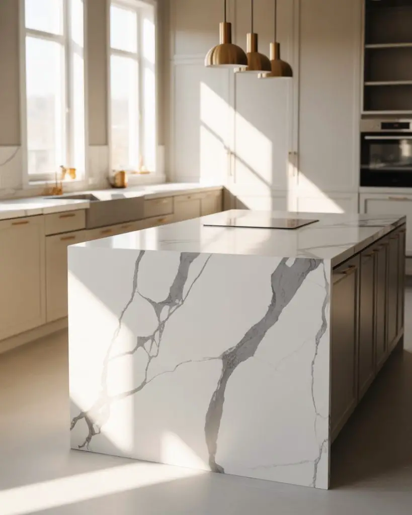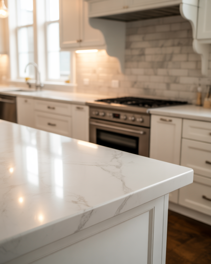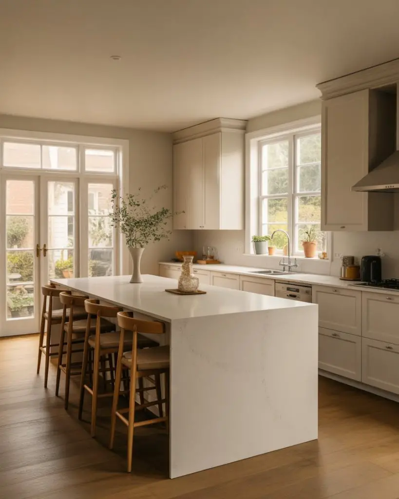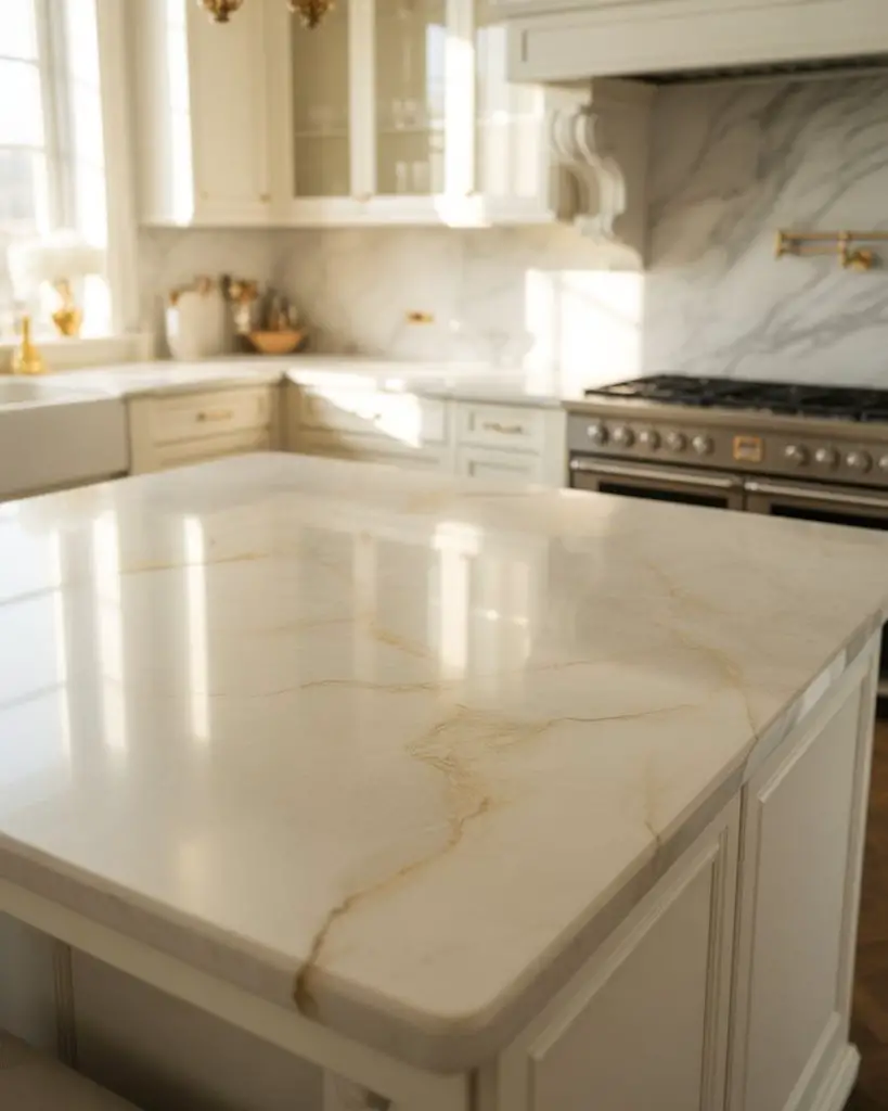 In many American homes, the kitchen serves as the homework station, mail sorting area, and casual dining spot all at once. Warm quartz handles this multi-use reality beautifully—it doesn’t show every coffee ring or flour spill the way darker surfaces do. Homeowners in Texas and Georgia report that this choice holds up well in humid climates, and the neutral tone ages gracefully as design trends shift over the years.