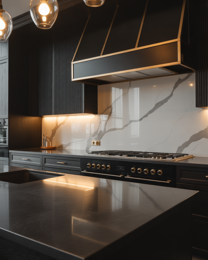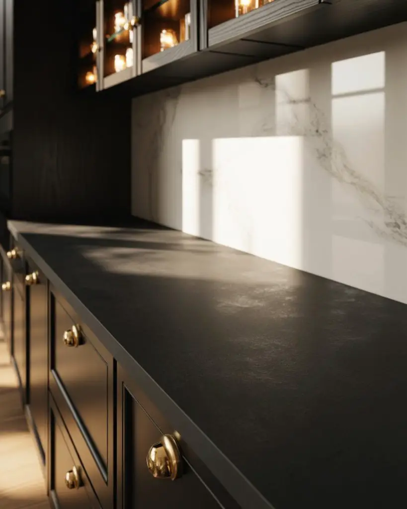 Dark quartz in shades of charcoal, navy, or near-black has become the countertop of choice for homeowners embracing moodier, more dramatic interiors. This trend has gained momentum in urban markets and among younger buyers who reject the all-white kitchen in favor of richer, more layered spaces. The dark surface creates a striking contrast against lighter cabinetry or plays into an all-dark scheme for maximum impact. Unlike natural dark stone, quartz won’t show etching from acidic foods and requires no sealing.