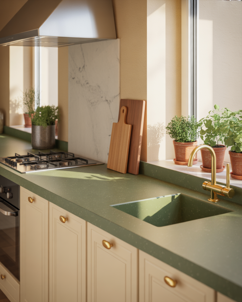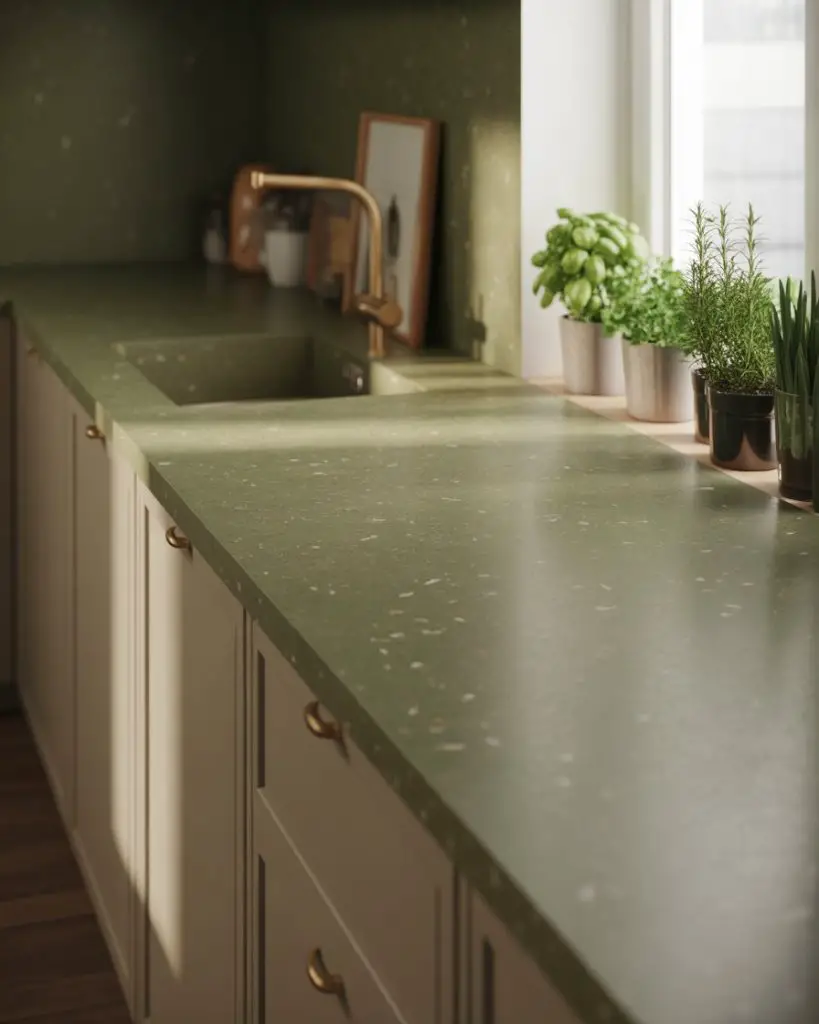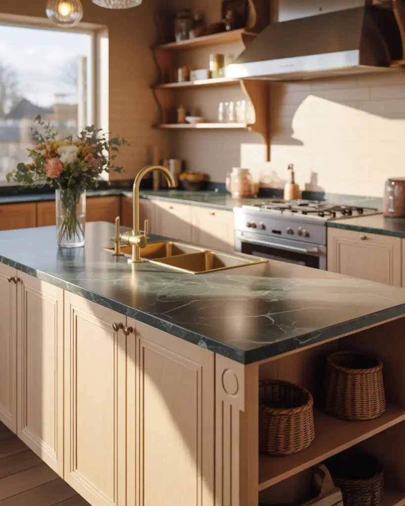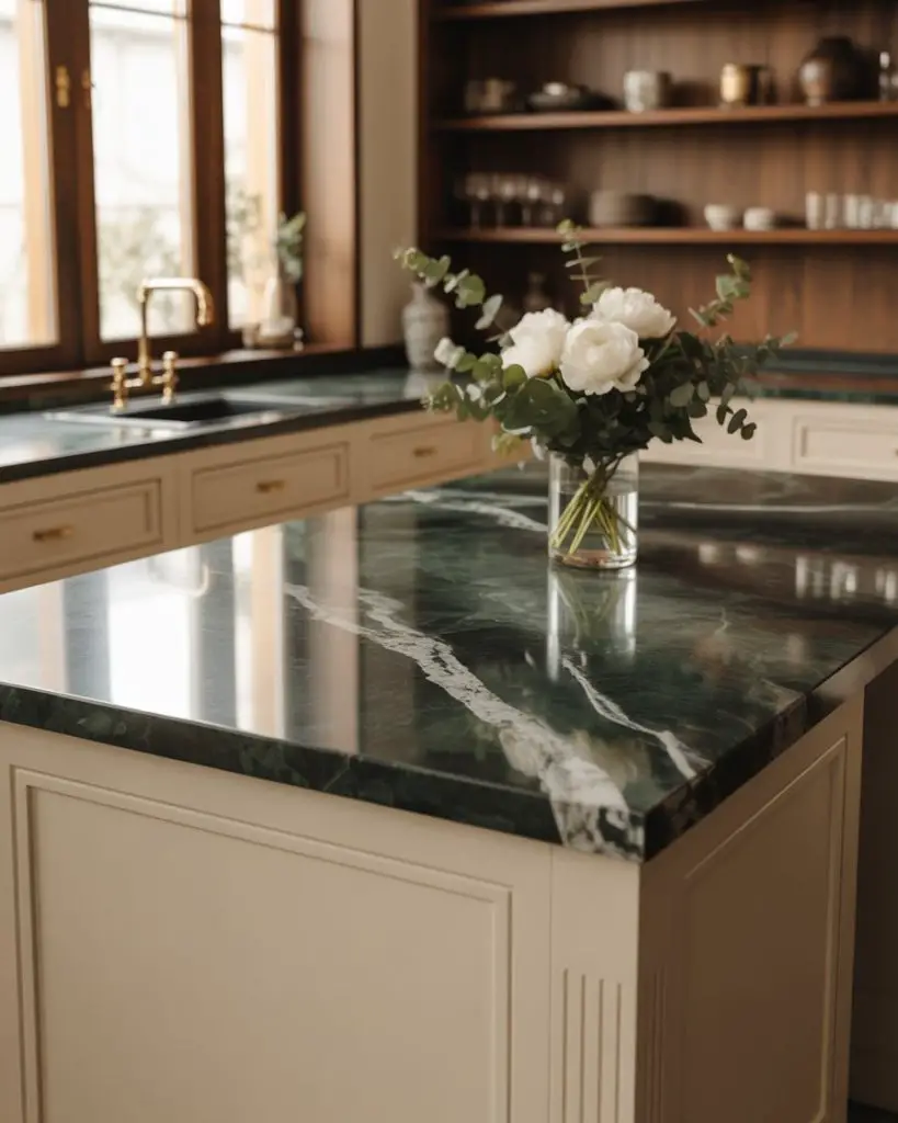 A designer in San Francisco noted that green marble has become her go-to recommendation for clients who want something special but not trendy—it has historical precedent in European design but feels fresh in American kitchens. Like all marble, it requires sealing and careful maintenance to prevent etching and staining. Many homeowners choose to use green marble on an island or a small section rather than the entire kitchen, concentrating the impact and limiting the maintenance burden. The stone reads as both luxurious and earthy, a rare combination in countertop materials.