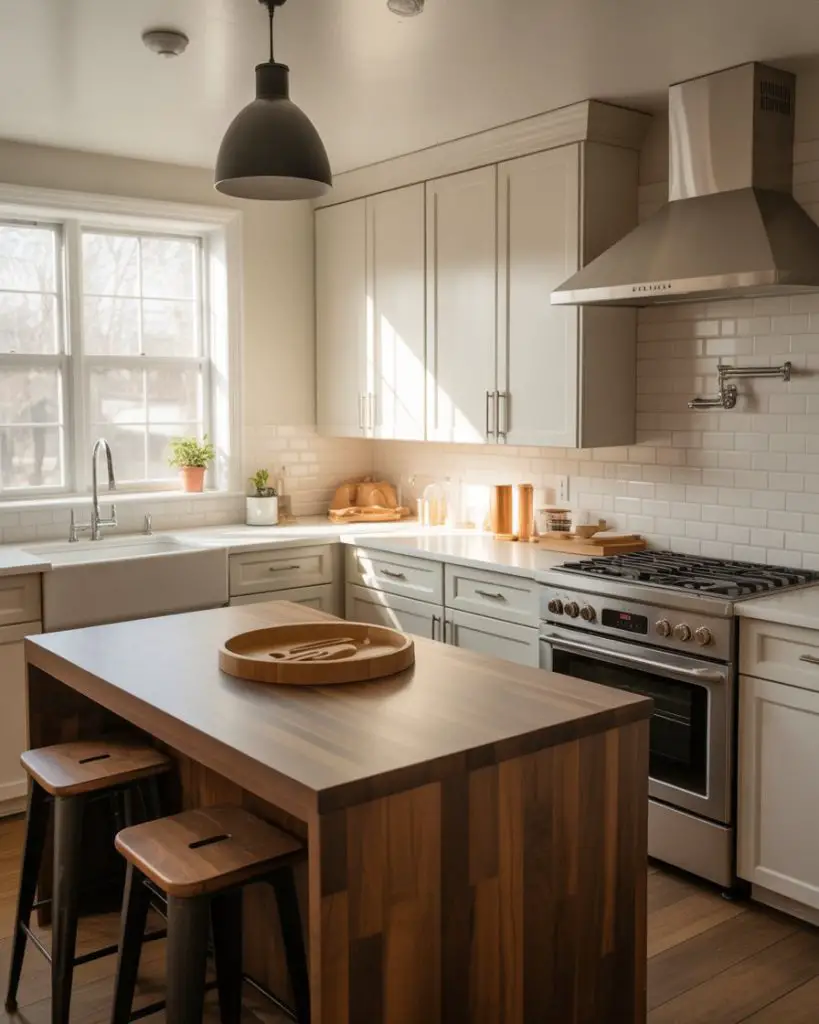 A couple in Vermont shared that their walnut butcher block island has become the heart of their kitchen—friends gravitate toward it during gatherings, and the wood’s warmth makes the space feel inviting even in the middle of winter. Wood does require regular oiling and can show knife marks over time, but many people embrace this patina as part of the material’s character. Avoid placing hot pots directly on the surface, and wipe up spills promptly to prevent staining.