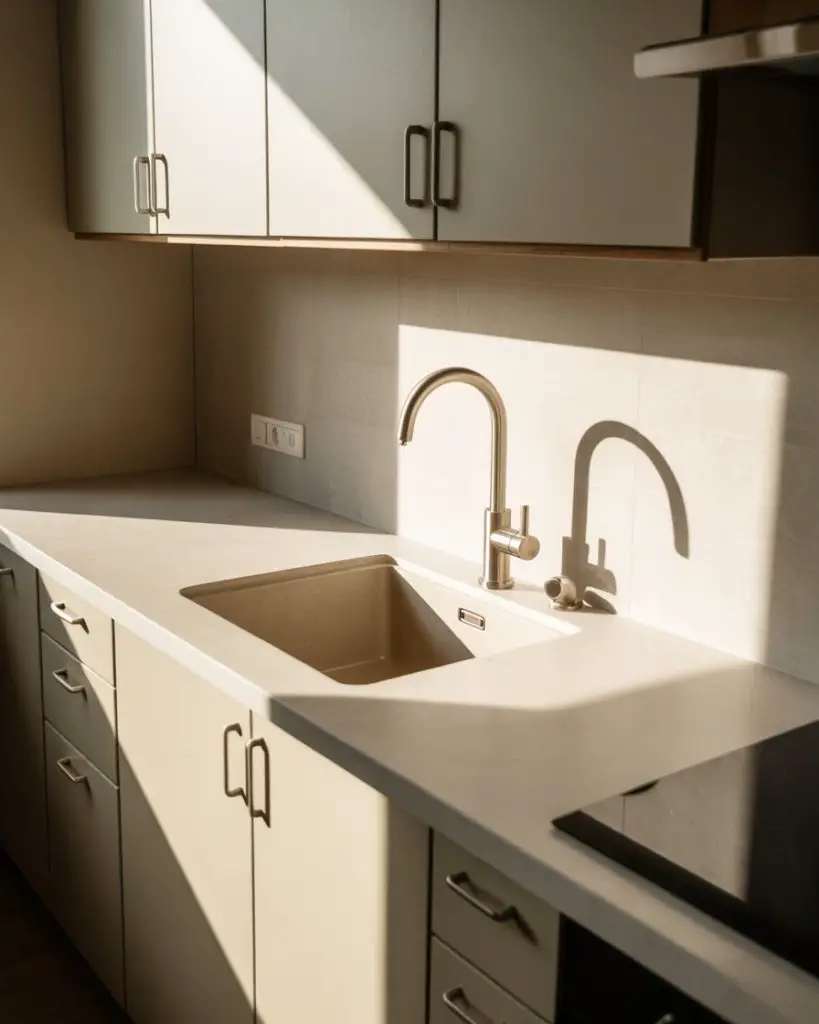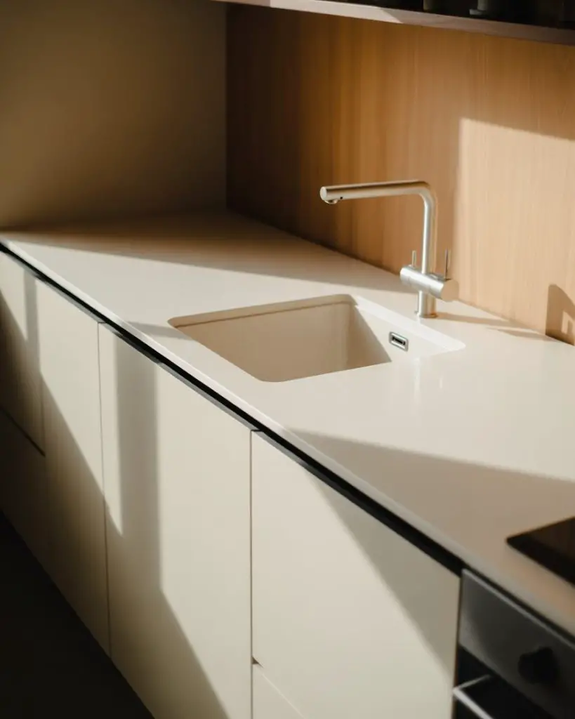 Practical insight: Integrated sinks eliminate the black rubber gasket or metal rim that can trap food particles and grime, making them more hygienic and easier to keep clean. They’re particularly popular among homeowners who value minimalist design and streamlined surfaces. The custom fabrication does add to the overall cost, but many people find the investment worthwhile for the clean lines and easy maintenance. Consider this detail if you’re already choosing quartz or solid surface and want to maximize the material’s seamless potential.