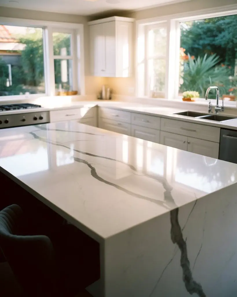 In American lifestyle terms, white quartz has become the default choice for homeowners who want a safe, timeless kitchen that appeals to the broadest range of tastes. It works equally well in traditional, transitional, and modern kitchens, serving as a neutral backdrop that allows other elements to shine. The surface shows dust and dark crumbs more readily than darker colors, but many people find that daily wiping is a small price to pay for the bright, clean aesthetic. Installation costs typically range from $55 to $95 per square foot.