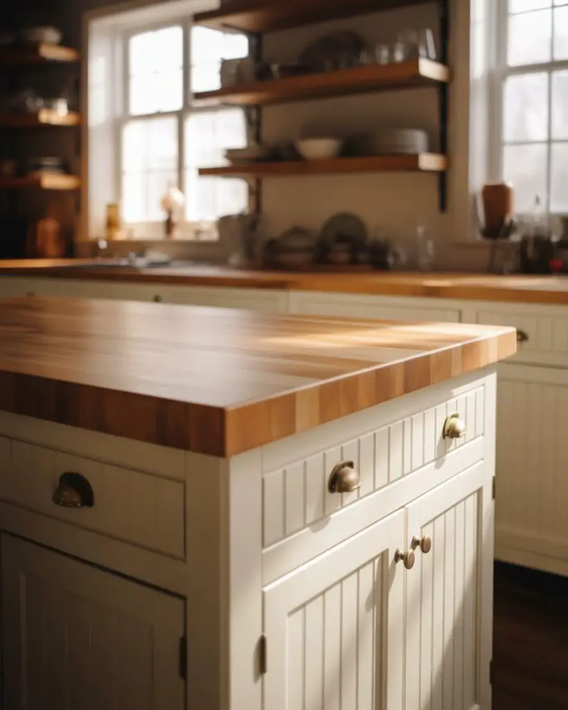 Wooden countertops bring an organic, tactile quality that no stone or engineered material can replicate. This choice has surged in popularity across rural communities and suburban homes that lean into farmhouse or cottage aesthetics. The natural grain and warm honey tones create a countertop that feels like furniture rather than a cold, industrial surface. Many homeowners use butcher block on islands or coffee station areas, where the wood adds visual warmth without covering the entire kitchen.