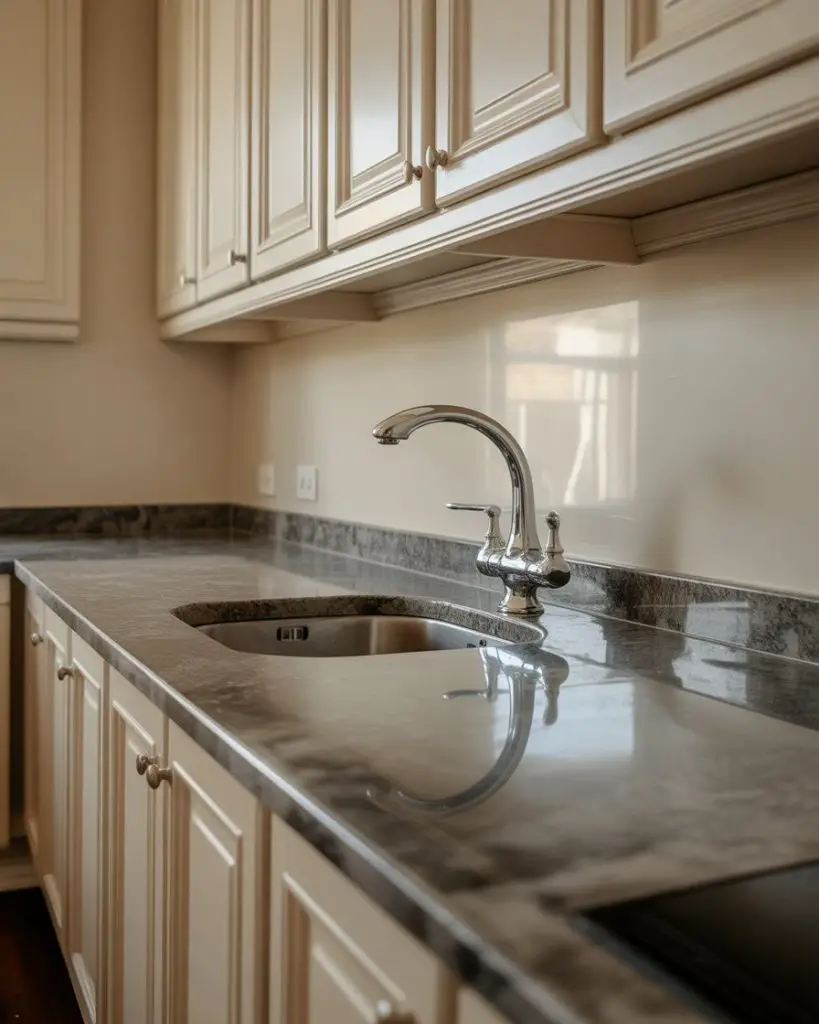 A homeowner in Arizona mentioned that her leathered granite counters have held up beautifully in a household with three kids—spills don’t show immediately, and the texture disguises minor scratches that would be obvious on polished stone. The finish is easier to maintain than polished granite because you’re not trying to preserve a mirror shine. It does require the same sealing schedule as other natural stone finishes. Leathered countertops appeal to people who want natural stone character without the high-maintenance glossy finish.