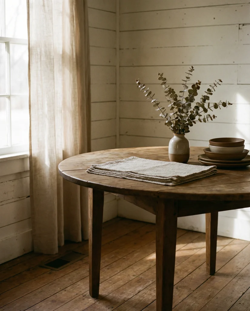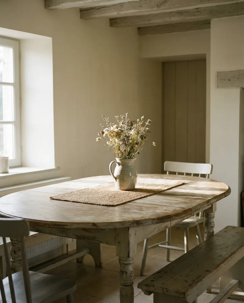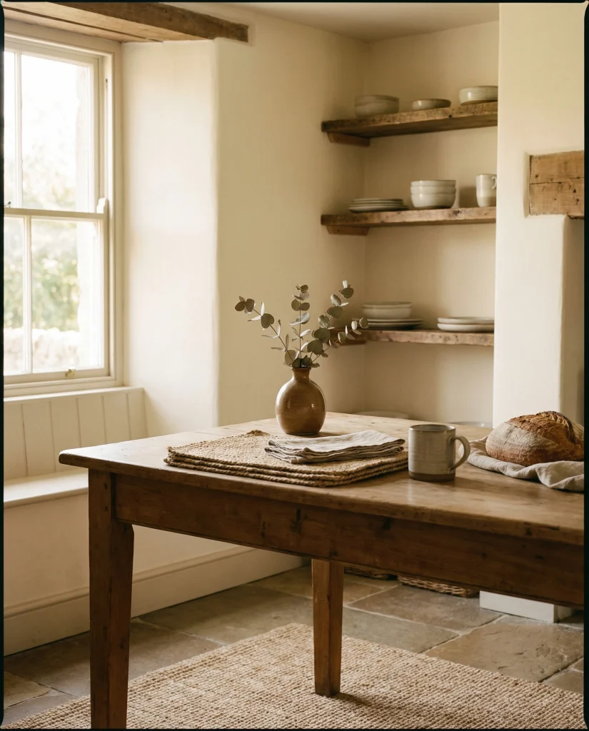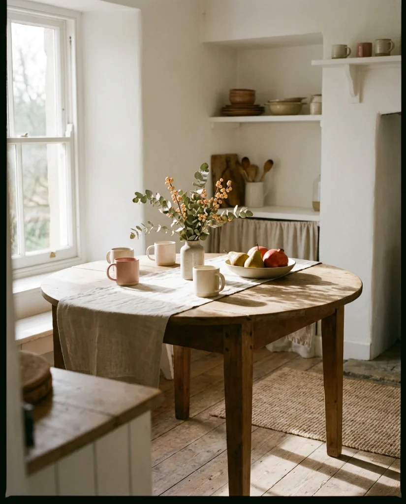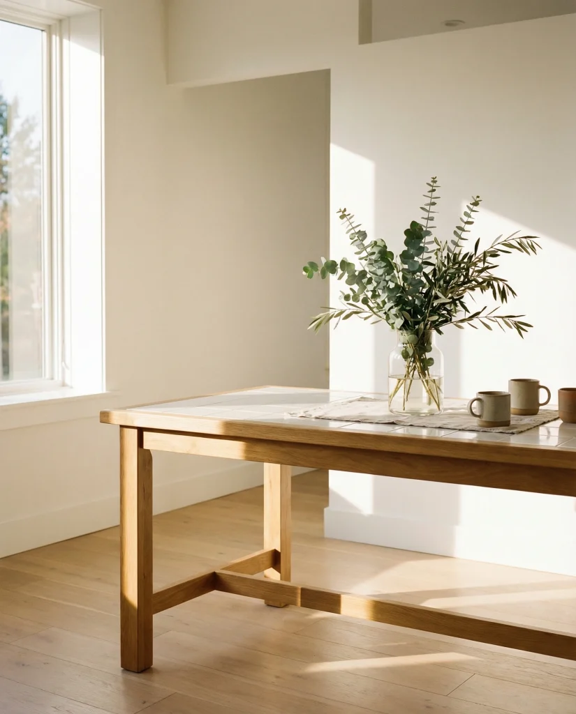 American lifestyle context: neutral palettes continue to dominate kitchens across the U.S., especially in open-plan homes where table decor needs to blend with living and dining zones without overwhelming the visual flow.