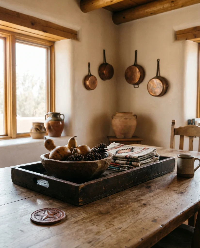 A subtle western nod—think a carved bowl or small leather detail—adds texture without overwhelming the space. Pairing it with a simple brown tray or linen runner creates warmth and channels that grounded, earthy American feel.