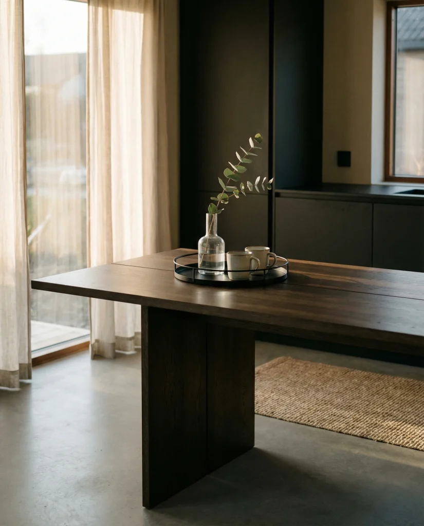 Where it works best: modern homes with darker cabinetry or matte fixtures, where the table decor echoes the finishes and enhances overall cohesion.