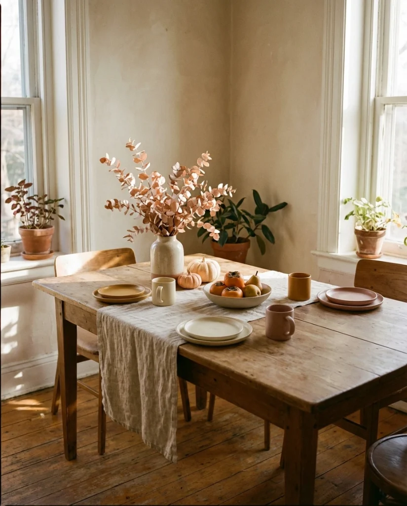 Practical insight: limiting the number of objects ensures the table still functions comfortably for everyday meals, especially in homes where the dining nook doubles as a work-from-home surface.