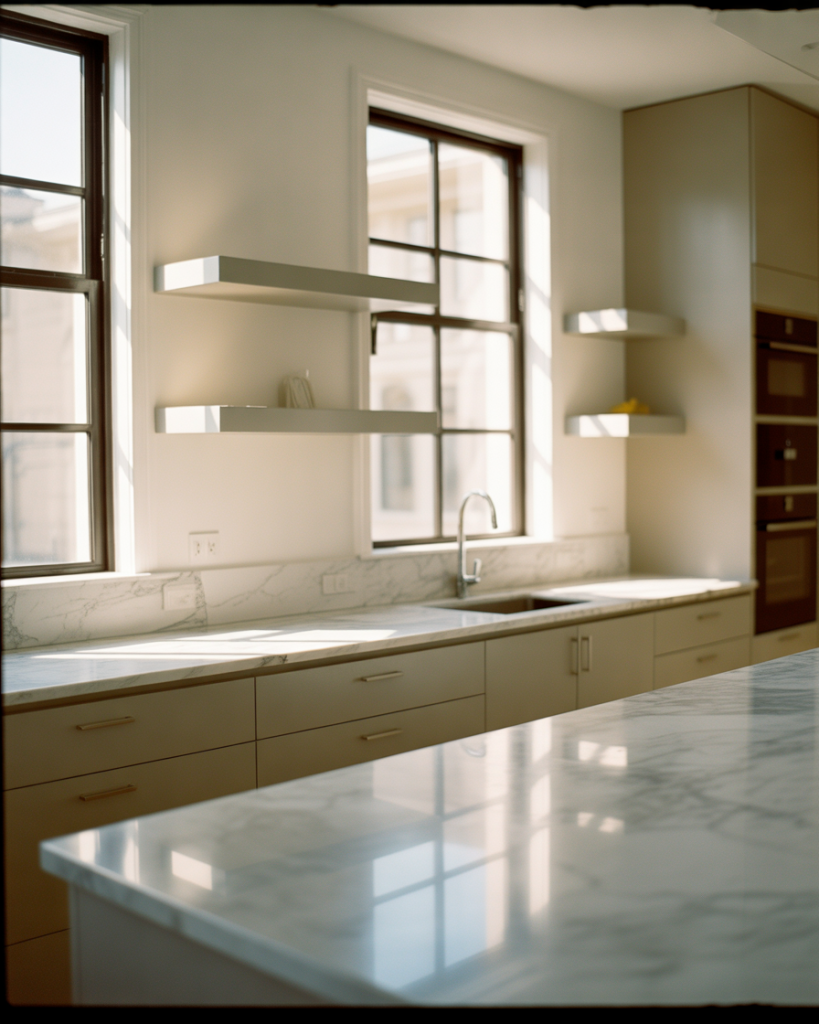 High-mounted clerestory windows solve the challenge of bringing natural light into kitchens without sacrificing wall space needed for upper cabinetry or compromising privacy in densely built neighborhoods. These horizontal windows positioned near the ceiling work even better when the ceiling itself is painted in high-gloss white or light-reflective finishes that bounce illumination deeper into the room. The windows themselves rarely need treatments since their height makes them invisible from ground level outside, though motorized shades remain an option for controlling heat gain in southern exposures.