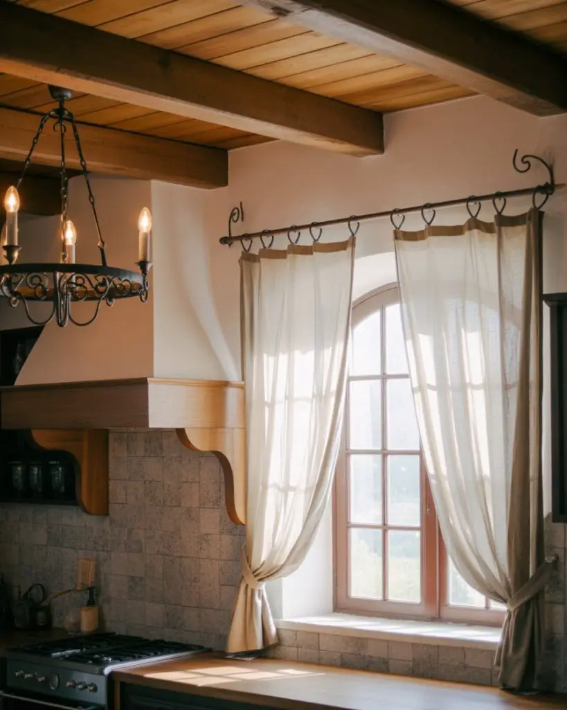 Where it works best is in Mediterranean, Tuscan, and Spanish Colonial-style kitchens where arched openings are original architectural elements worth celebrating rather than concealing. The common mistake involves ignoring the arch and mounting straight rods below the curve, which makes the window appear shorter and wastes the dramatic vertical height that gives these openings their elegant proportions and timeless appeal.