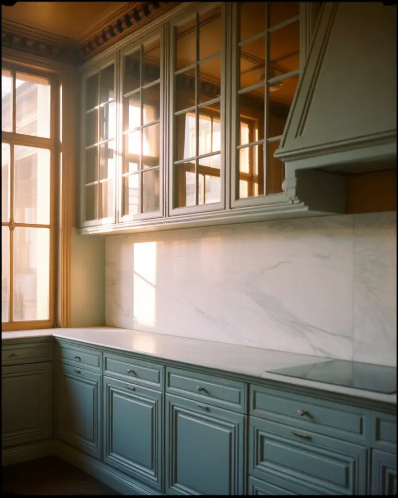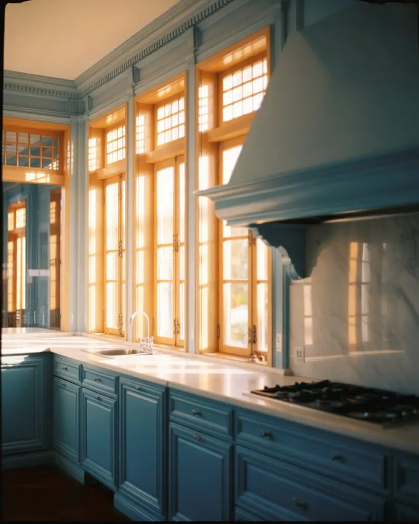 Adding transom windows above existing kitchen windows captures light from higher angles throughout the day, reducing reliance on artificial lighting during early morning and late afternoon hours. These narrow horizontal windows work particularly well in kitchens with 9-10 foot ceilings where wall space exists above standard window headers. They typically don’t require treatments since their height provides natural privacy, though decorative stained glass or frosted panels can add color and pattern if desired for aesthetic rather than functional reasons.