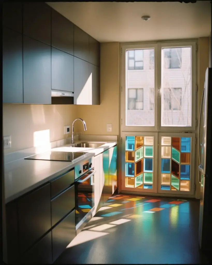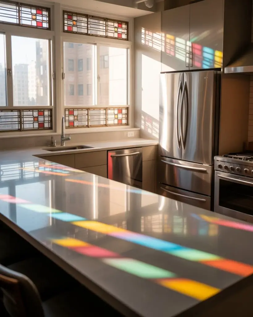 Renters and homeowners in apartment settings have discovered removable stained glass films that deliver pattern and color while preserving natural light flow. These adhesive-backed sheets come in geometric, floral, and abstract designs that mimic authentic leaded glass at a fraction of the cost and installation complexity. They’re especially valuable in urban kitchens where privacy from neighboring buildings is essential, but heavy window treatments would make compact spaces feel claustrophobic.