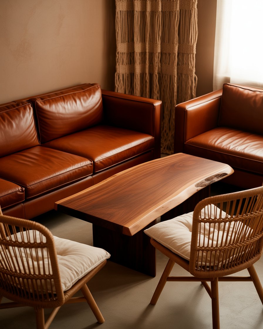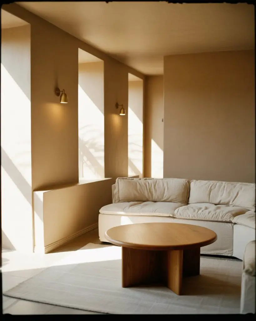 Caramel is a warm, honey-toned brown that’s gaining traction as a neutral alternative to gray. Paired with soft ivory or cream, it creates a living room palette that feels rich and enveloping without being too dark. This schemes approach is especially popular in spaces with mid-century modern or Scandinavian influences, where warm wood tones are already a key design element.
