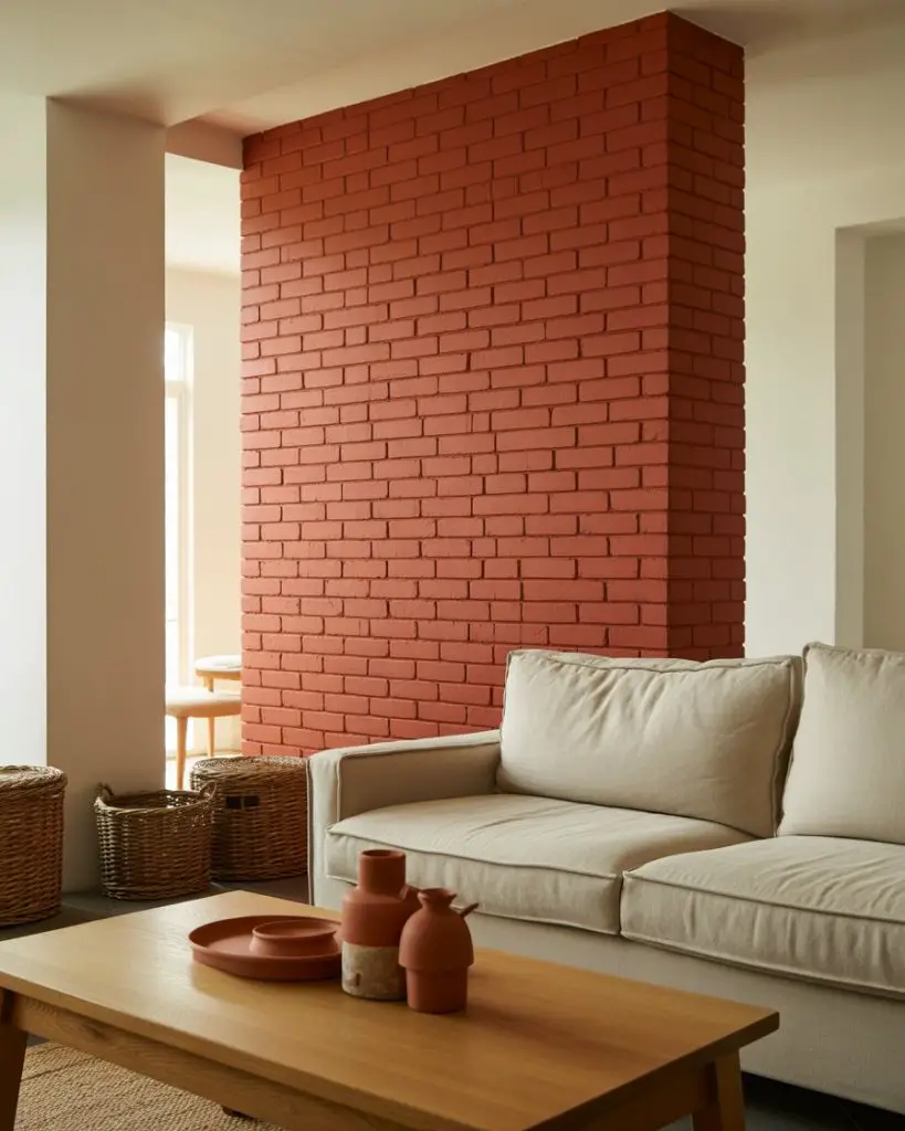 Real homeowners in the Southwest and California often gravitate toward this palette because it echoes the natural clay and adobe tones in the landscape. If you’re worried brick red might feel too intense, test it in a small area first—behind a bookshelf, in an alcove, or on a chimney breast—before committing to a full wall.