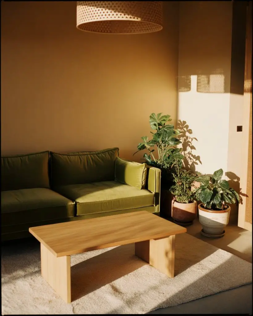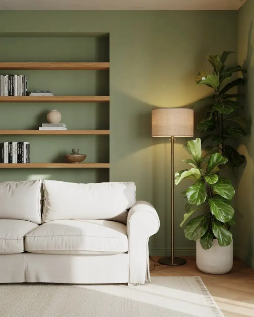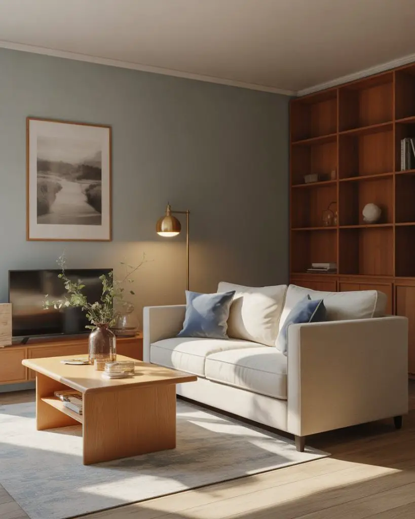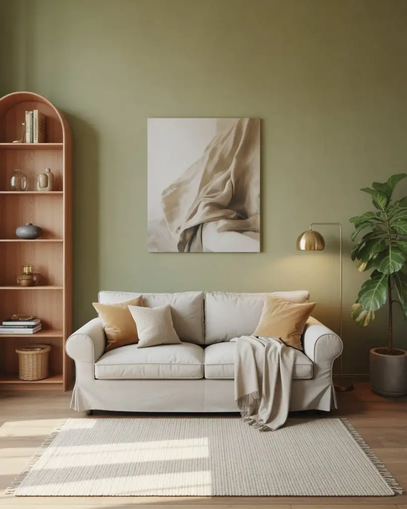 One common mistake is pairing sage with cool grays, which can make the room feel sterile. Instead, lean into warm neutrals and wood tones to enhance the organic, earthy vibe. This palette works especially well in smaller living rooms or apartments where you want color without visual weight.