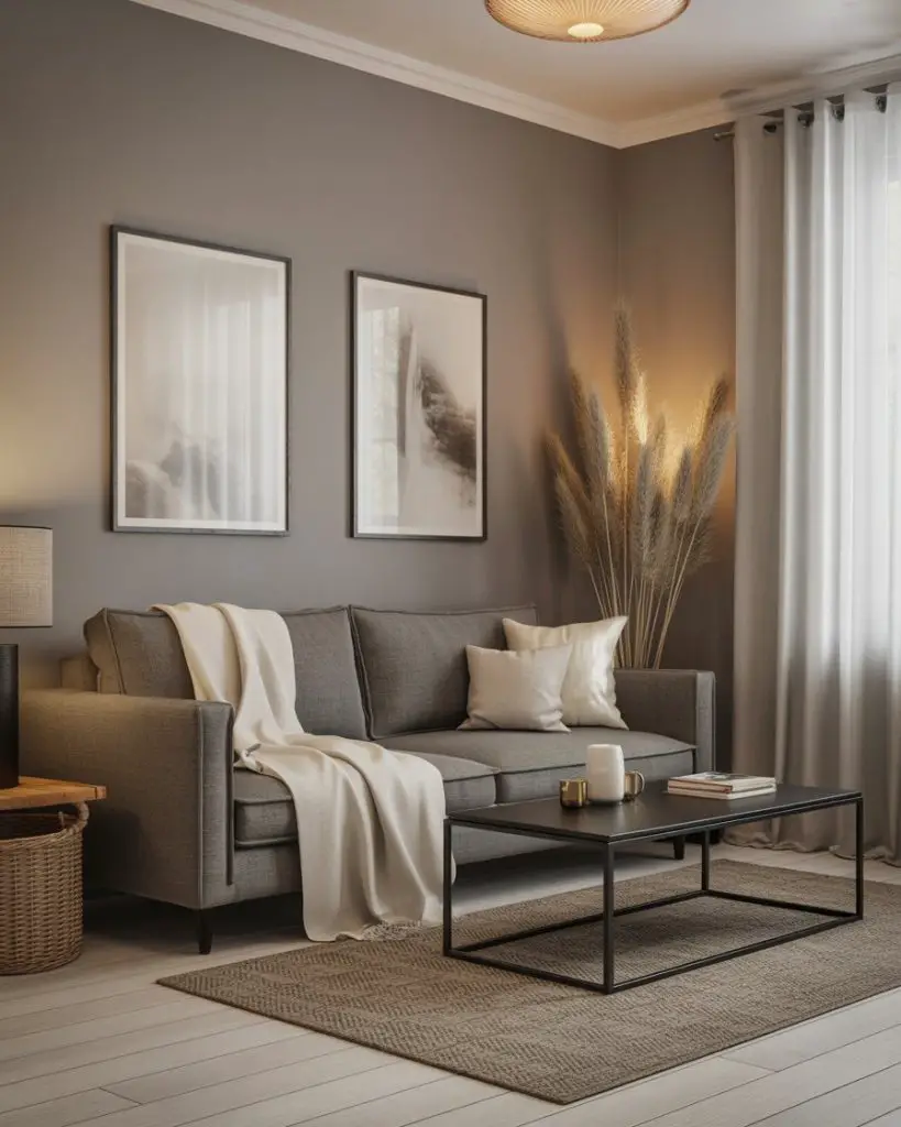Pewter gray offers a sophisticated, modern alternative to standard gray, with just a hint of blue or green undertone that makes it feel less flat. Pair it with warm ochre or mustard accents to add energy and warmth, creating a scheme ideas bright palette that’s both grounded and lively. This works especially well in contemporary or industrial-style living rooms where you want a clean, curated look.