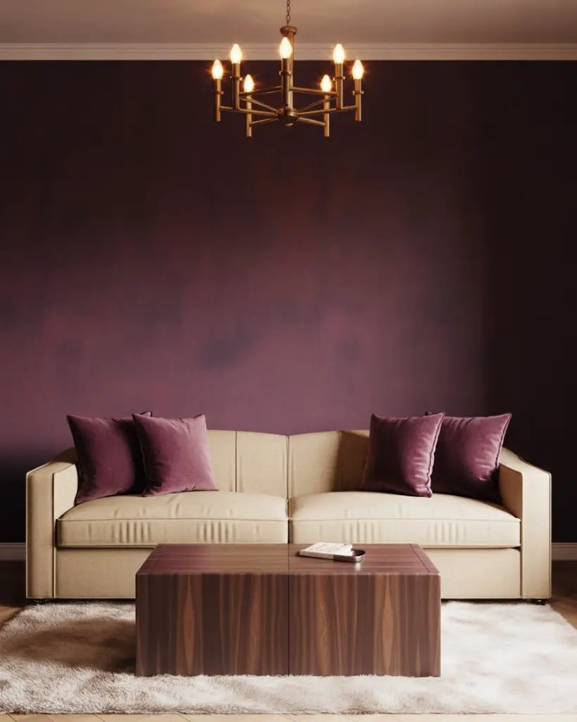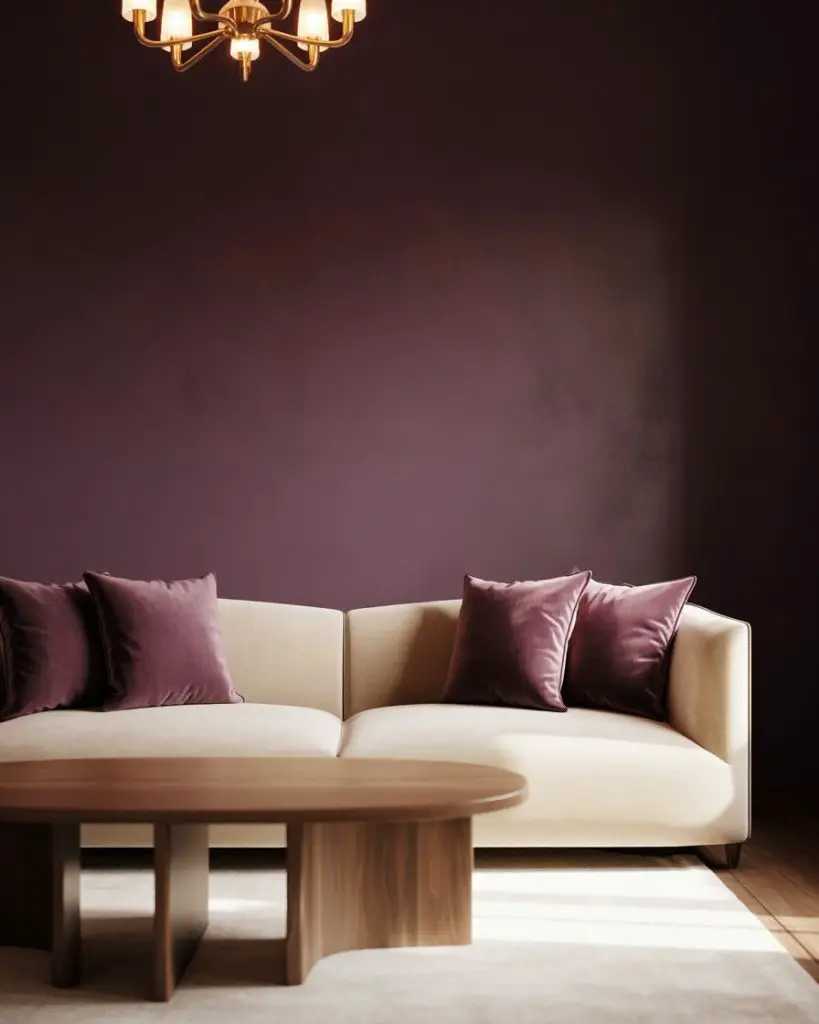 Plum is one of the most underrated living room colors, offering depth and drama without the heaviness of black or charcoal. Paired with soft cream or ivory, it creates a cozy yet sophisticated palette that works beautifully in both traditional and eclectic spaces. This combination feels rich and enveloping, perfect for living rooms that are used primarily in the evening or for entertaining.