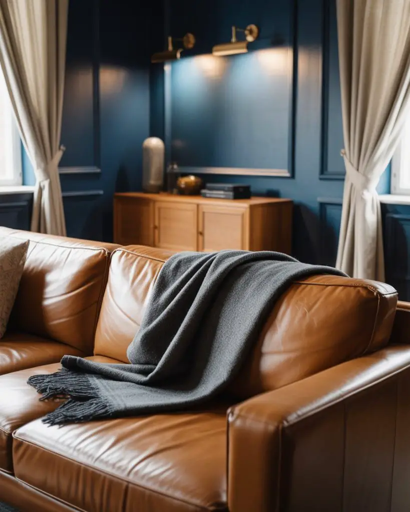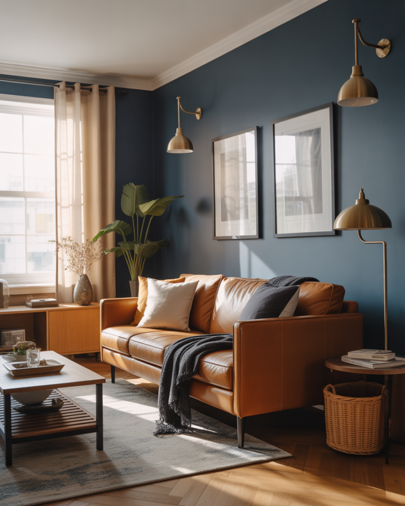 Navy blue is making a serious comeback as a living room anchor color, especially when balanced with warm wood tones. Unlike cooler blues, navy brings drama and depth without feeling cold, and it pairs beautifully with brass hardware, leather seating, and light oak or walnut furniture. It’s a palette ideas favorite for homeowners who want a sophisticated, library-inspired vibe that still feels inviting.