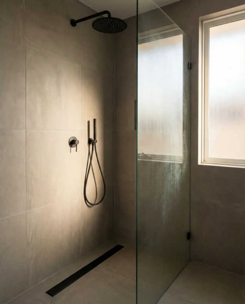 A design note worth sharing: in grey bathrooms, warm grey always wins over cool grey for livability. Cool grey with blue undertones can read clinical under artificial light—especially the warm color temperature of most bathroom fixtures. Warm grey with greige or taupe undertones stays softer and more inviting throughout the day. If you’re choosing tile samples, always hold them up under your bathroom’s actual lighting before committing. The showroom lighting at tile stores is rarely representative of real-world bathroom conditions, and it’s the most common source of buyer’s remorse.