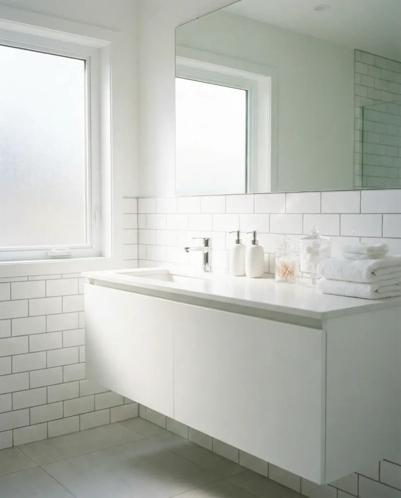 If you’ve spent any time on Roblox’s building platform Bloxburg, you know the aesthetic: impeccably clean rooms with all-white or soft white palettes, neat floating shelves, matching accessories, and a general sense of idealized tidiness that’s weirdly aspirational. In 2026, that cute and clean virtual design language has migrated into real-world bathroom inspo, especially among younger homeowners and first-time renters personalizing their spaces. The real-world translation involves white subway tile, chrome hardware, clear glass containers for toiletries, and symmetry—everything in its place, nothing extraneous.