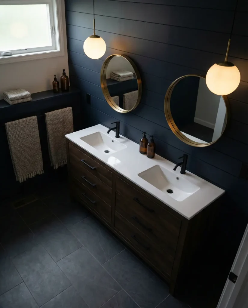 The biggest mistake homeowners make with dark bathrooms is not layering enough light. Recessed lighting alone won’t cut it—you need sconces at eye level flanking the mirror, and ideally some natural light from a window or skylight. A common oversight is choosing a dark grout to match the tile and then finding the whole floor reads as a muddy void. Instead, try a slightly lighter grout in slate or dove grey: it gives definition without fighting the drama. Real homeowners who’ve committed to this look consistently report one thing—they wish they’d done it sooner.