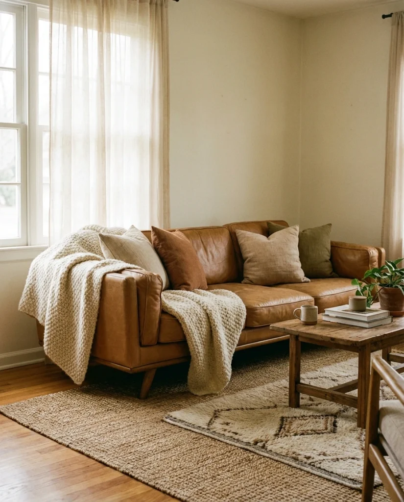Layering different textile textures—a rug with deep pile, nubby linen throw pillows, smooth leather seating, and perhaps a chunky knit blanket—adds warmth and tactile interest to spaces that might otherwise feel too austere. This approach aligns with Scandinavian hygge principles while maintaining mid-century’s edited aesthetic. The key is varying texture while maintaining a cohesive color story, typically neutrals with one or two accent colors that appear across multiple textile categories.