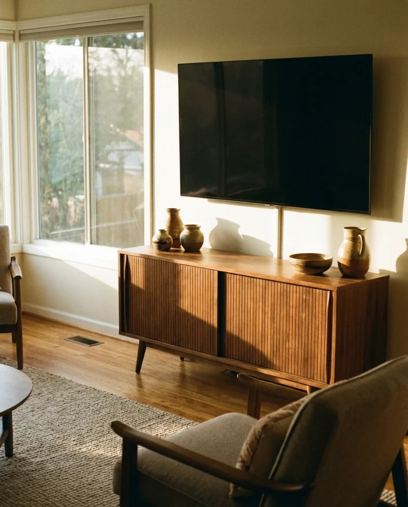 Expert designers recommend measuring your equipment precisely before purchasing vintage pieces—drawer heights and cabinet depths designed for 1960s stereos often can’t accommodate modern receivers and gaming consoles. In tech-heavy households, consider custom modifications like cable management solutions or ventilation improvements. Prices for quality vintage credenzas range from four hundred to three thousand dollars depending on maker, condition, and regional market, with reproduction pieces offering similar aesthetics starting around six hundred dollars.