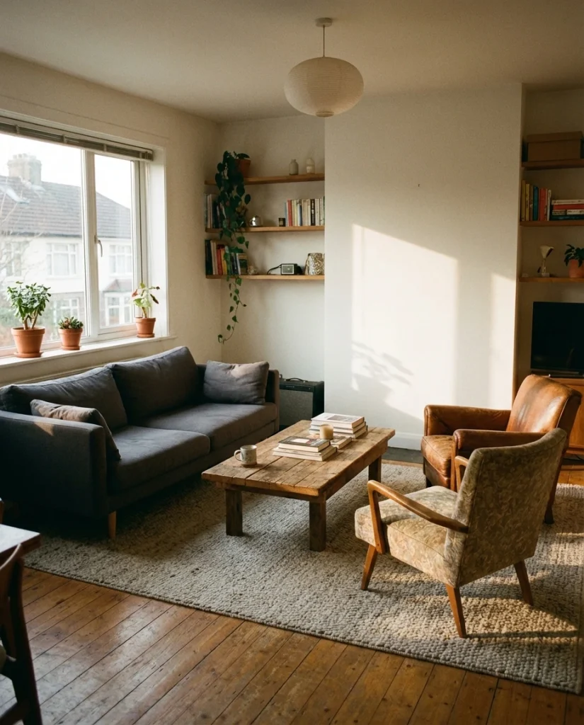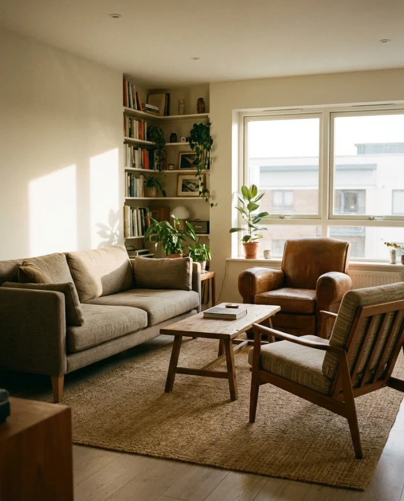 This works exceptionally well in larger living rooms (over three hundred square feet) where multiple zones prevent the space from feeling empty or echoing. The common mistake is creating seating groups too far apart—twelve to fourteen feet between facing sofas or chairs maintains comfortable conversation distance. In homes where the living room genuinely serves multiple functions—reading, entertaining, music listening—distinct zones acknowledge this reality rather than forcing everything to orient toward a single focal point.