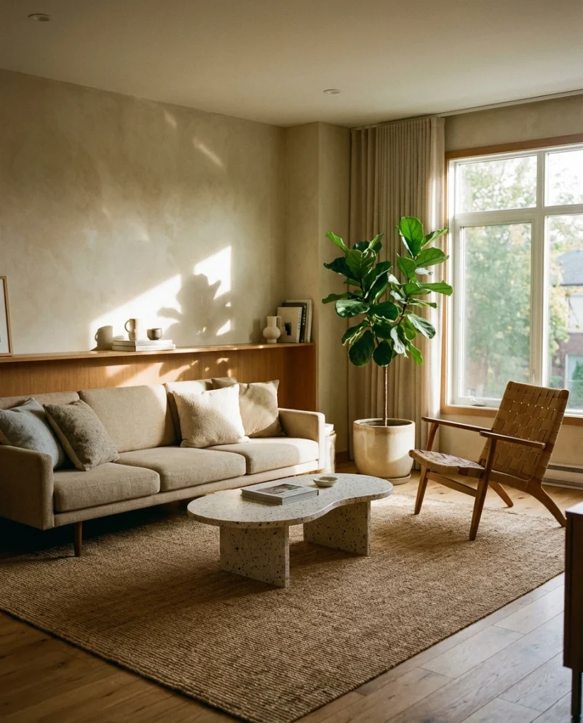 Terrazzo’s playful speckled pattern is experiencing a major moment in interior design, appearing in coffee tables, planters, and decorative objects that inject colorful texture into neutral living rooms. This material’s mid-century credentials are impeccable, yet contemporary makers are producing pieces in fresh colorways that feel current rather than costume-like. The key is restraint—one or two terrazzo elements create interest, while too many can overwhelm the space’s sophisticated simplicity.