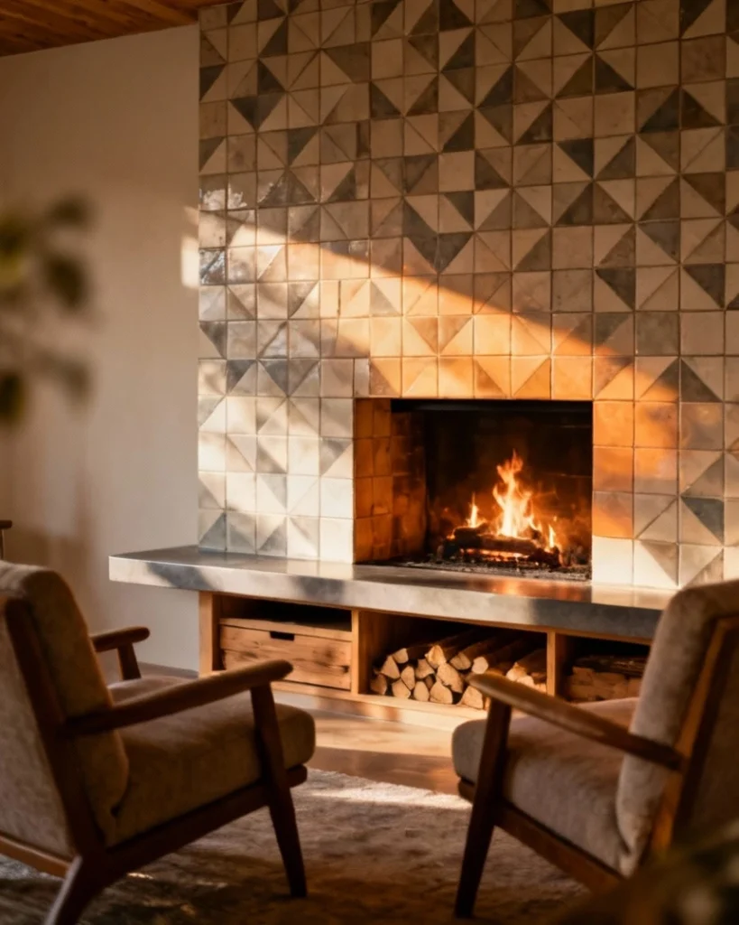 In Colorado and Montana mountain homes, these statement fireplaces often incorporate local stone for regional character while maintaining clean modern lines. The biggest mistake is undersizing the surround—mid-century design embraced bold scale, so a timid tile treatment will read as an afterthought rather than an intention. Tile alone can range from eight to thirty dollars per square foot, with installation adding significantly to the budget depending on pattern complexity.