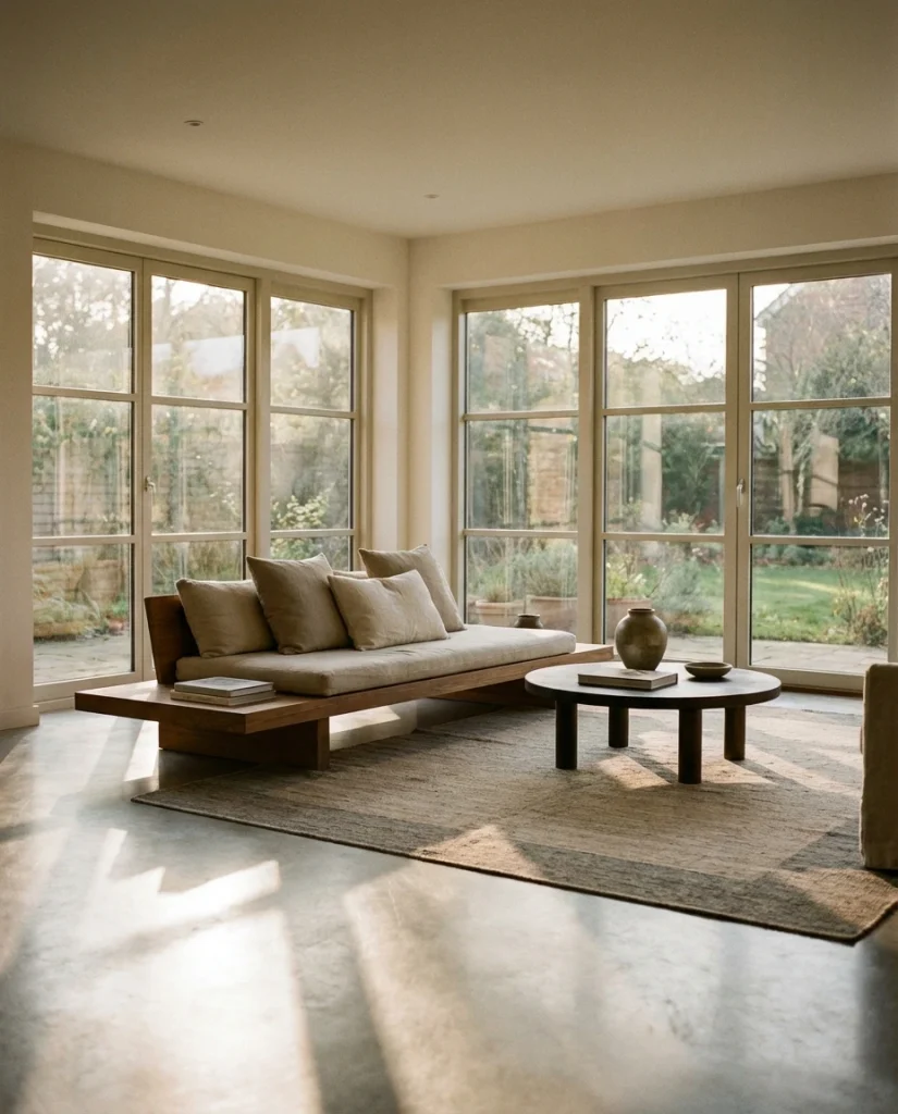 This layout style particularly suits West Coast homes with abundant natural light and views worth showcasing. The practical insight here is that low seating requires careful cushion selection—too soft and it becomes difficult to stand, too firm and it’s uncomfortable for extended sitting. Quality foam with proper density ratings (around 35-40 for seat cushions) ensures both comfort and longevity while maintaining the sleek visual profile.