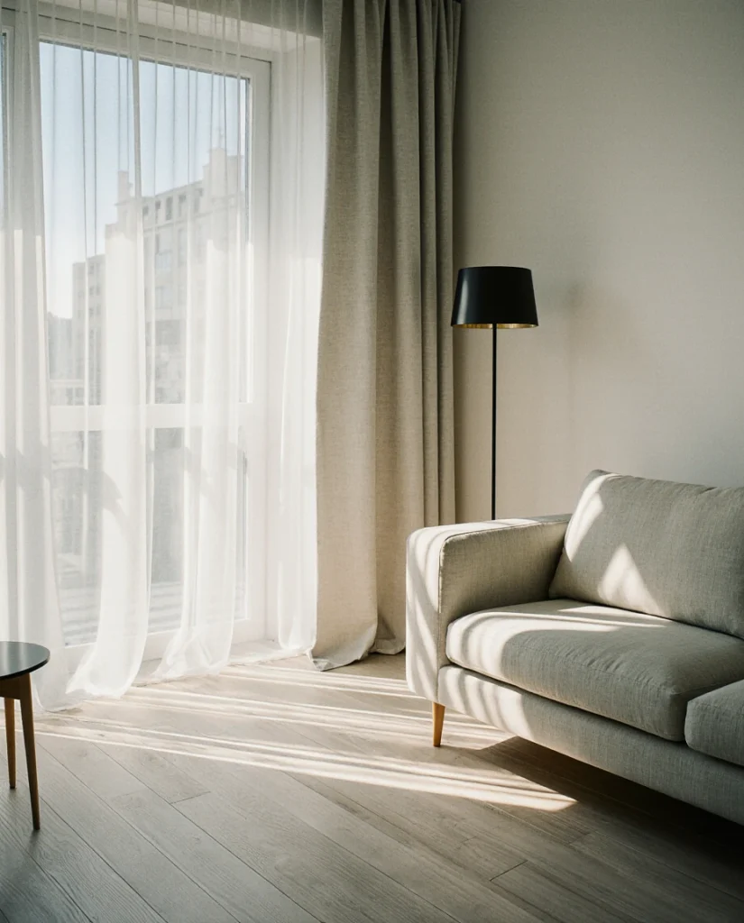 A Scandinavian approach to minimalism creates living rooms that feel airy and calm, using a palette of soft whites, warm grays, and natural wood tones. This modern neutral style relies on quality over quantity—think a single sculptural floor lamp, a low-profile linen sofa, and perhaps one carefully chosen ceramic vase. The design inspiration comes from Nordic winters, where maximizing natural light and creating cozy interiors became essential to well-being. Large windows left bare or dressed in sheer linens invite daylight to flood the space, making even compact urban apartments feel expansive and breathable.