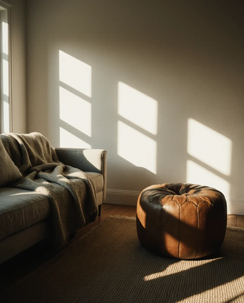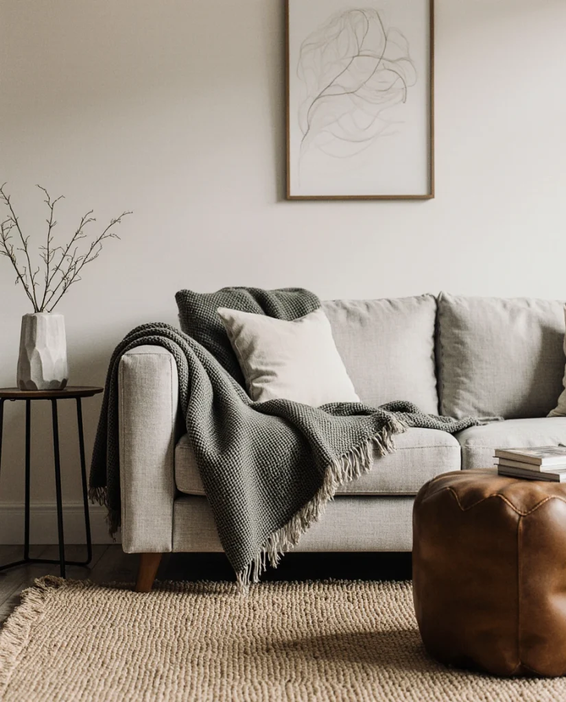 Creating a cozy minimalist living room relies heavily on texture layering rather than color or pattern complexity. A linen sofa, wool throw blanket, leather ottoman, jute rug, and ceramic lamp base introduce five different materials while maintaining a cohesive neutral palette. The earthy approach favors natural fibers and materials that age beautifully—think how leather develops patina or linen softens with washing. These textural variations catch light differently throughout the day, creating visual interest that prevents the space from feeling flat or sterile despite its simplicity.