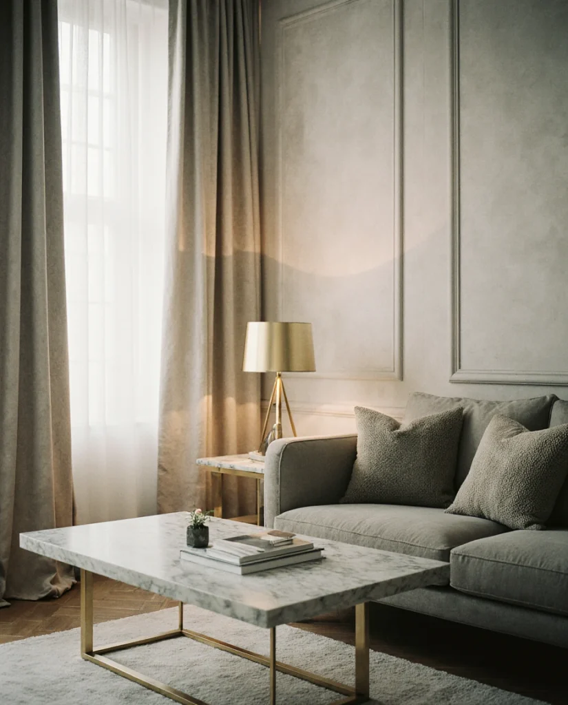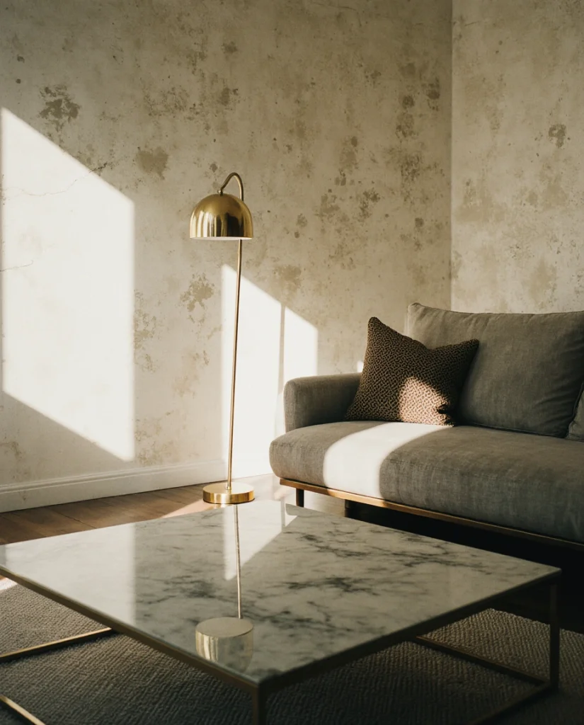 A design’s modern luxury approach elevates minimalism through exceptional materials and craftsmanship rather than ornate details. Marble coffee tables, bouclé upholstery, brushed brass fixtures, and hand-plastered walls demonstrate how quality and restraint create sophisticated spaces. The contemporary luxury aesthetic avoids logo-heavy designer pieces in favor of understated excellence—furniture that looks simple but reveals its quality through construction, fabric hand, and finish details. This is minimalism for those who appreciate the difference between an affordable linen and a Belgian linen, or between veneer and solid walnut.