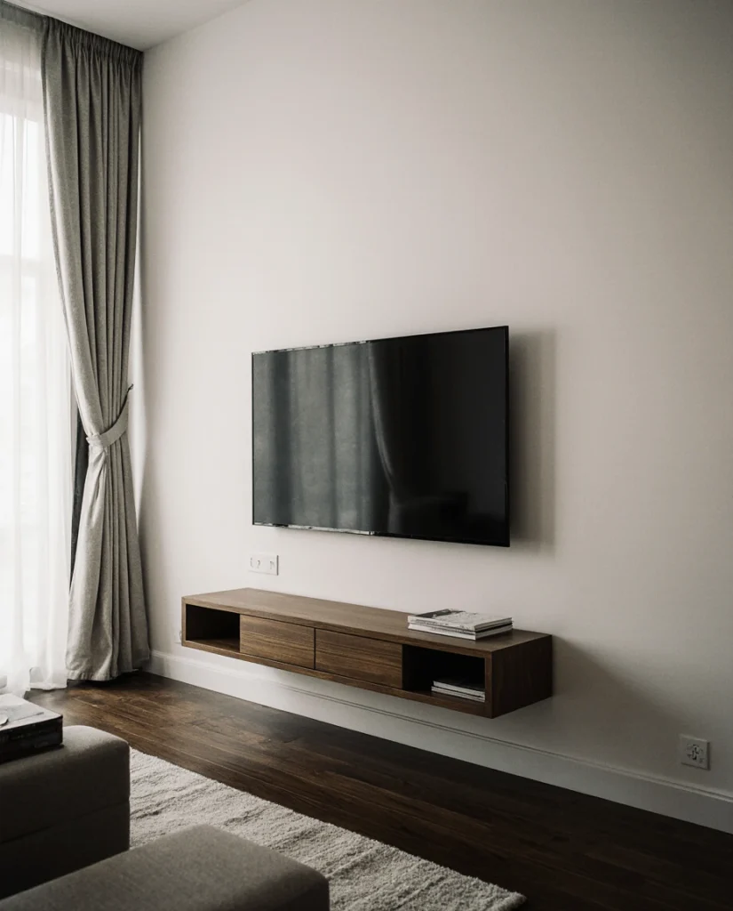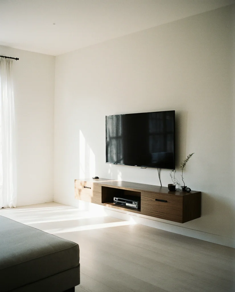 Suggestions from design professionals about your usual viewing distance and screen size, determine what distance feel comfortable watching. Oversized televisions tend to overshadow minimalistic spaces, and instead of enhancing the design, work to destroy the simplicty. In open concept spaces, it is helpful to position the tv console to define the living area from dining, creating functional zones without the use of walls. Integrated cable management systems are worth it. Visible cords are the fastest to destroy a clean minimalist aesthetic and create visual noise that defeats the entire purpose of the style.