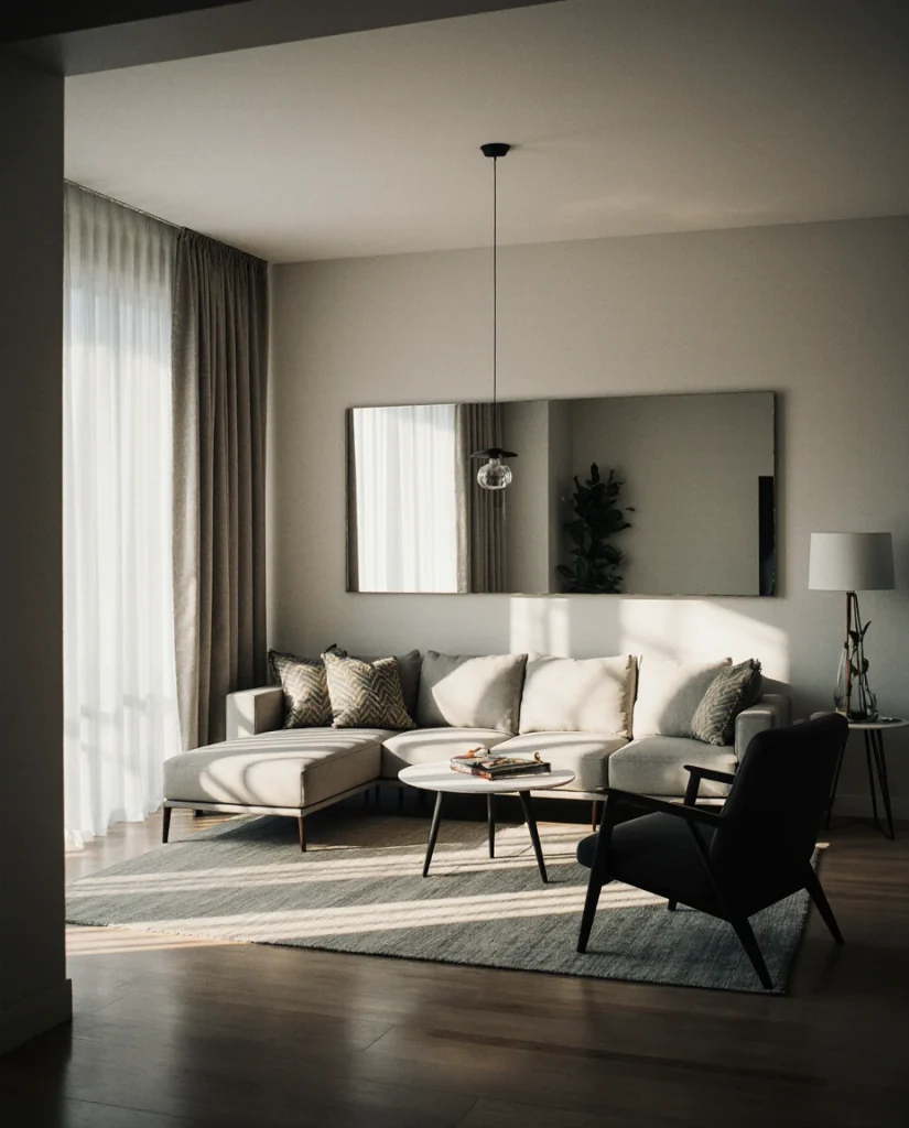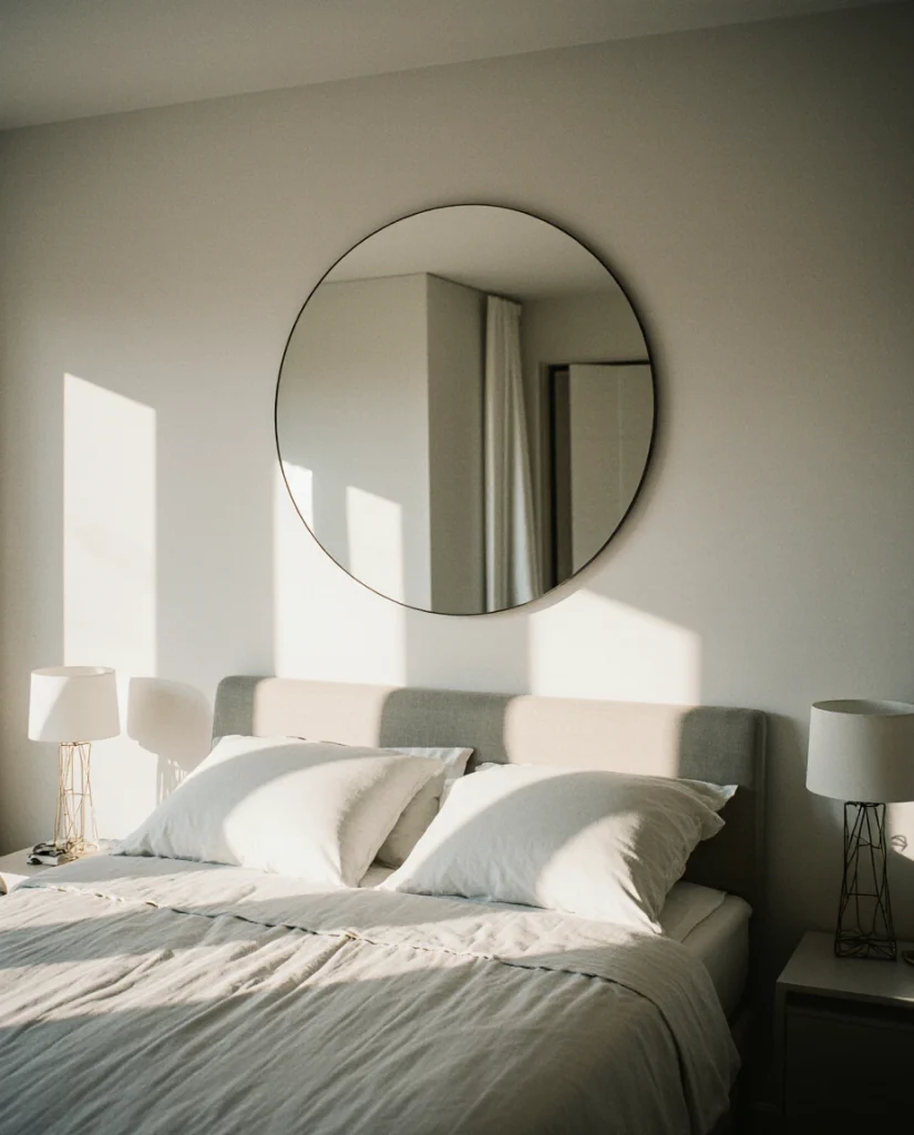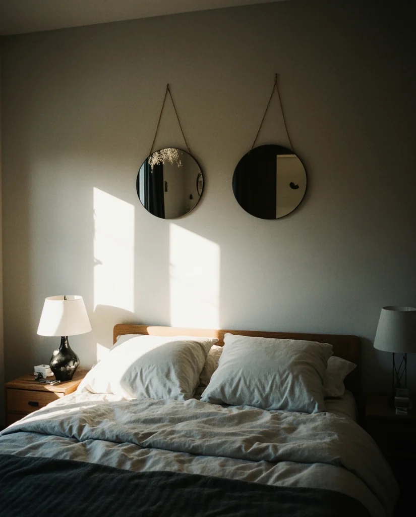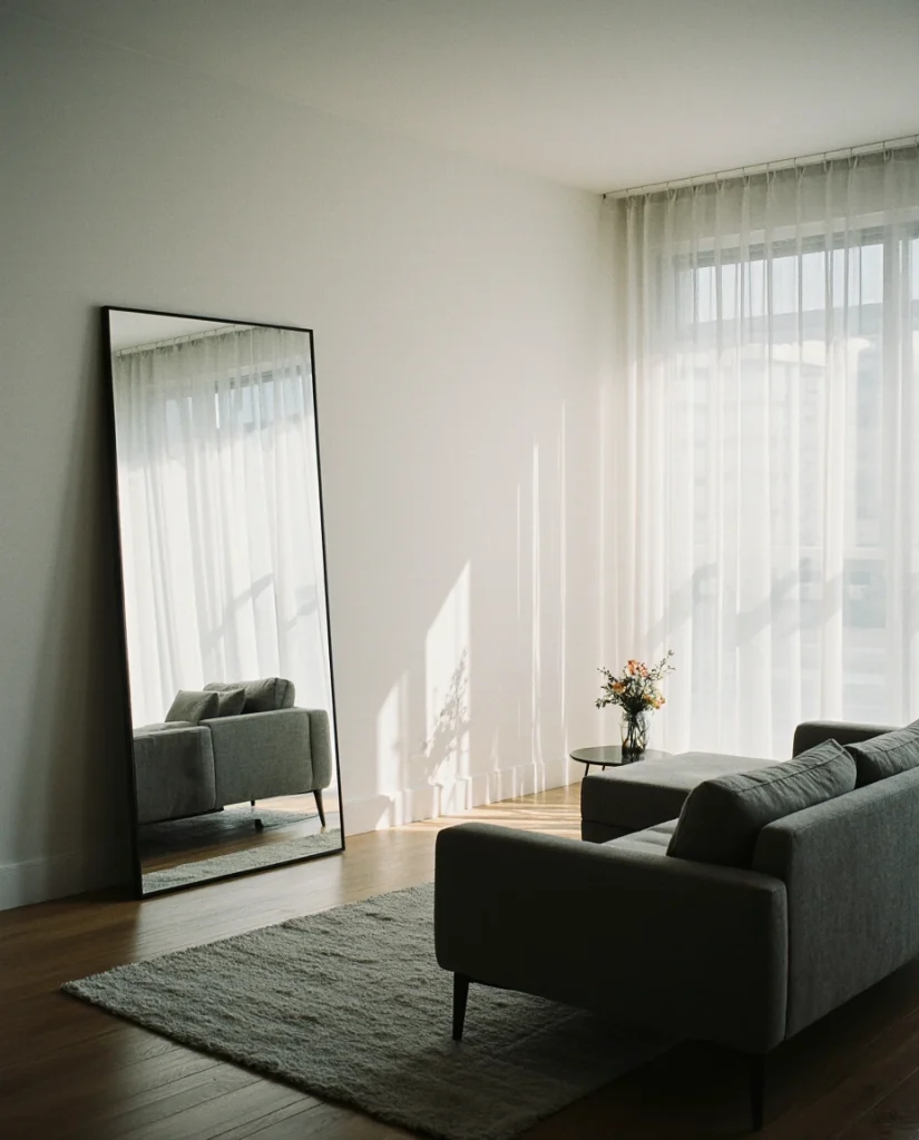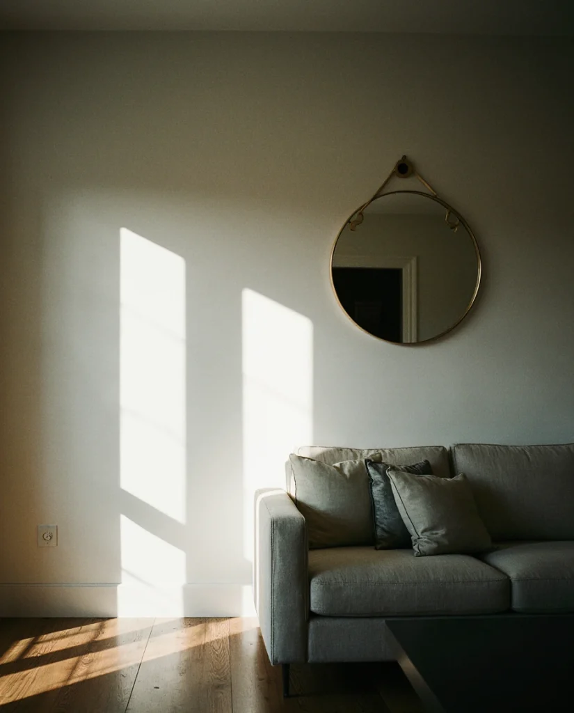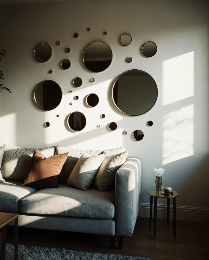 This approach originated in Scandinavian design, where maximizing daylight is essential through long winters—now embraced across American cities dealing with similar seasonal light challenges. Clusters work beautifully above sofas or media consoles, filling negative space without competing with artwork. The fragmented reflections scatter light in multiple directions, creating a subtle shimmer that changes as you move through the room throughout the day.