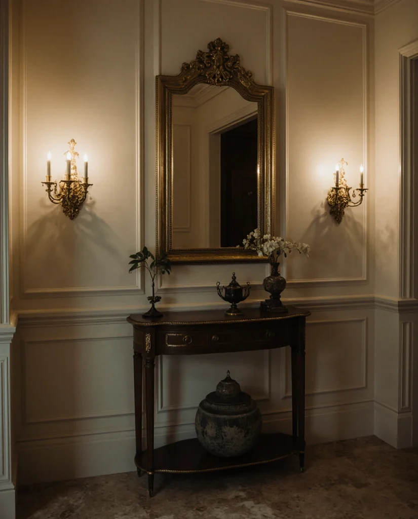 Where it works best: Formal entryways in traditional or transitional homes where you want to signal style immediately upon entering. The brass finish ties together lighting fixtures, door hardware, and cabinet pulls, creating visual cohesion that feels intentional. Avoid mixing brass with chrome or nickel in the same sightline—stick to one metal family per room to maintain polished, designer-quality aesthetics.
