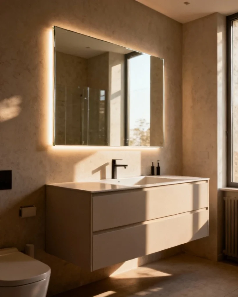 Installing frameless mirrors with integrated LED backlighting modernizes bathroom vanities while providing task lighting for grooming, increasingly standard in new construction across the Sunbelt. The edge glow eliminates harsh shadows typical of overhead fixtures, offering flattering illumination. Minimalist design suits contemporary homes where clean lines and technology integration define the aesthetic.