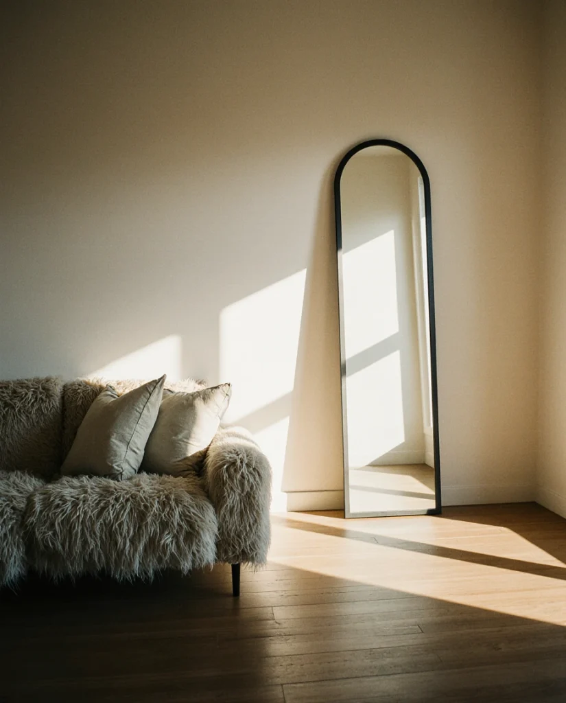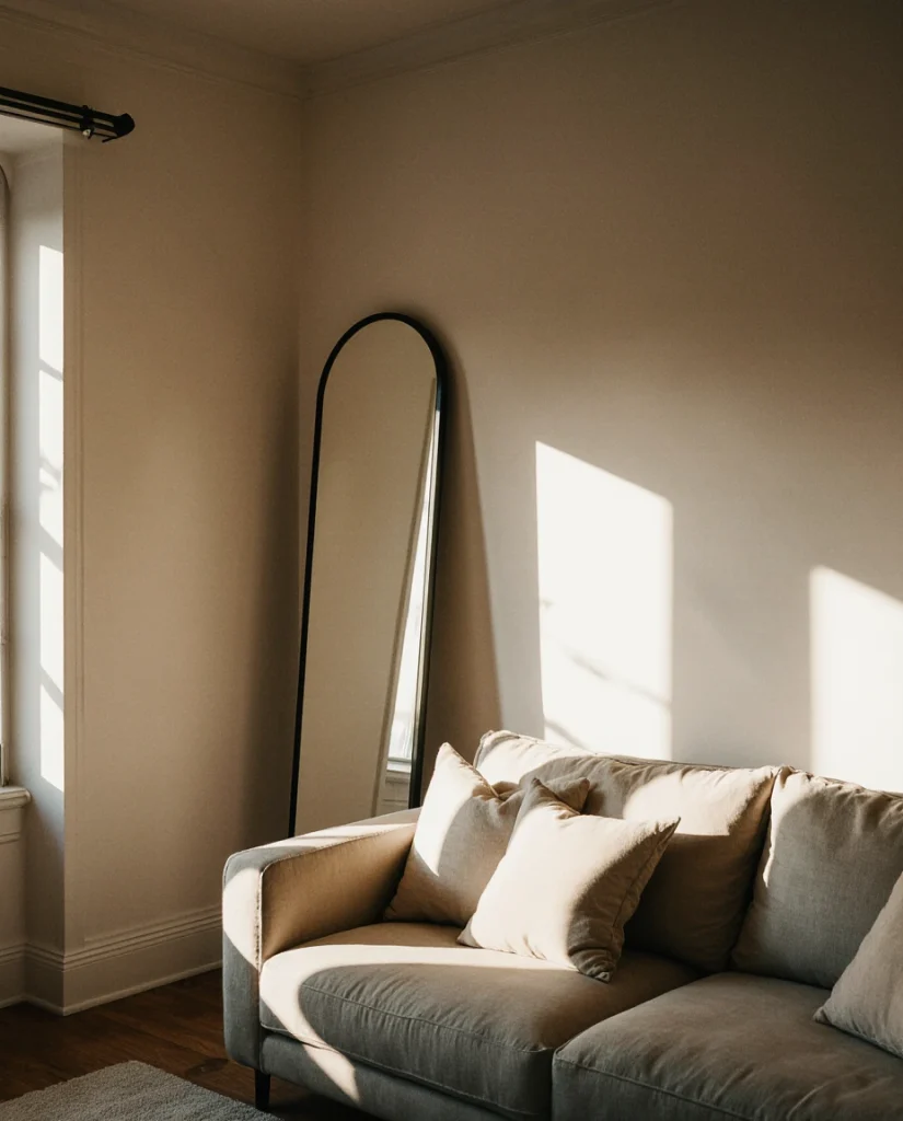 Budget-conscious shoppers often find quality arched mirrors in the $300-$600 range at retailers like West Elm or CB2, making this a relatively affordable way to achieve high-impact design. The lean-to installation method eliminates mounting hassles and allows flexibility to reposition as your layout evolves. Many homeowners place these near windows to double the perceived natural light—a practical trick in north-facing rooms that tend toward dimness during winter months.
