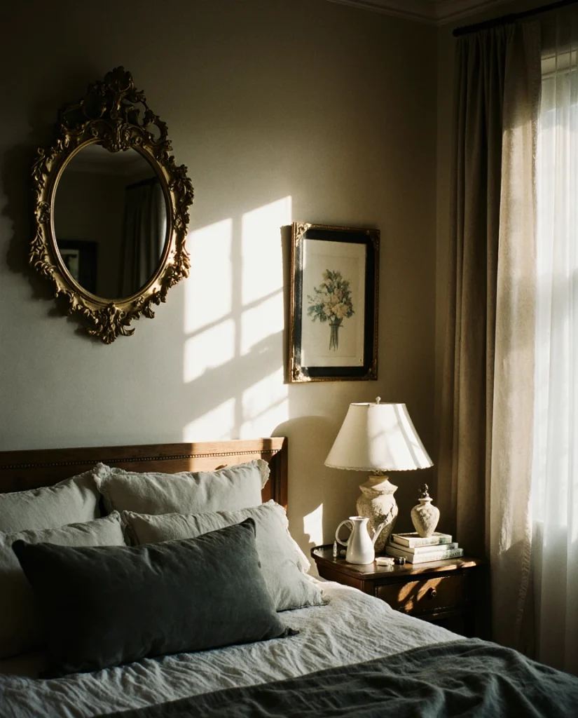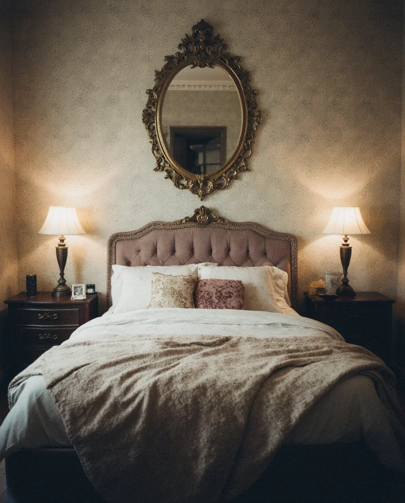 Budget shoppers often find authentic vintage mirrors at estate sales for $50-$200, then refresh frames with chalk paint or new finishes to match current palettes. The ornate detailing provides contrast against modern furniture, preventing rooms from feeling too matchy or catalog-perfect. Position these above dressers or in dressing areas where the decorative frame enhances the getting-ready ritual, adding a touch of everyday luxury to morning routines.