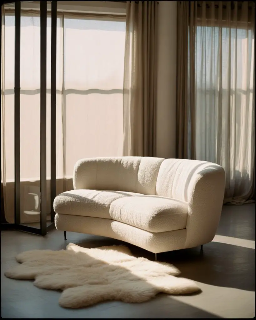 A crisp black and white palette might sound stark, but soft textures transform it into something inviting. Think a white boucle sofa, black window frames, a plush sheepskin rug, and linen drapes. The high contrast creates drama, but the tactile elements keep it warm. It’s a favorite among design lovers who want something bold but not loud.