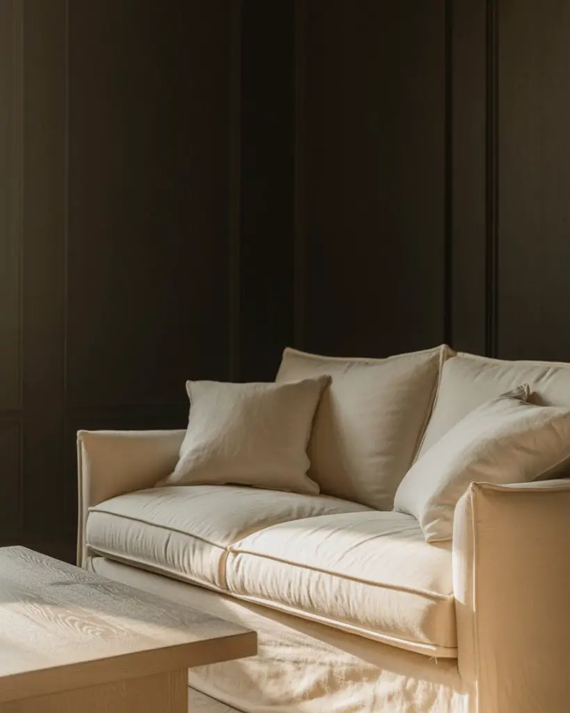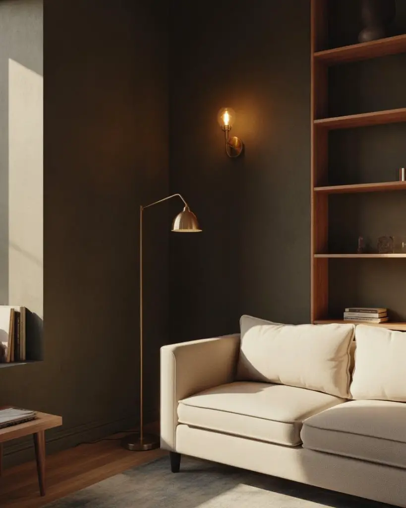 Flip the script by painting your walls a deep charcoal or espresso, then furnishing with light-toned pieces—ivory, cream, or pale oak. The contrast is striking and makes the furniture feel like it’s floating. This dark approach adds depth and sophistication, especially in rooms with high ceilings or interesting architectural details.